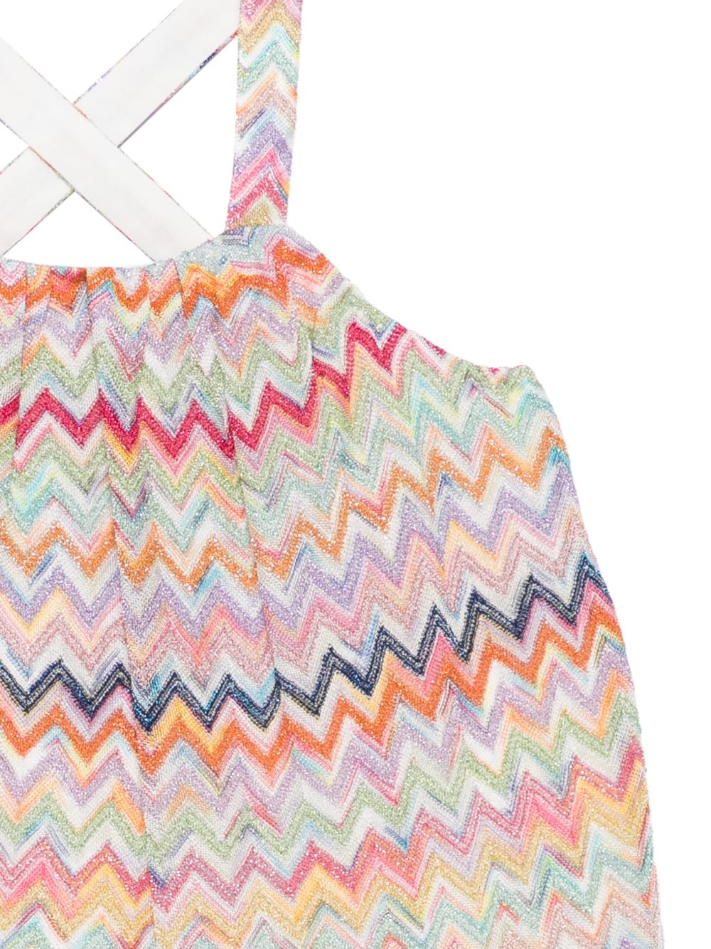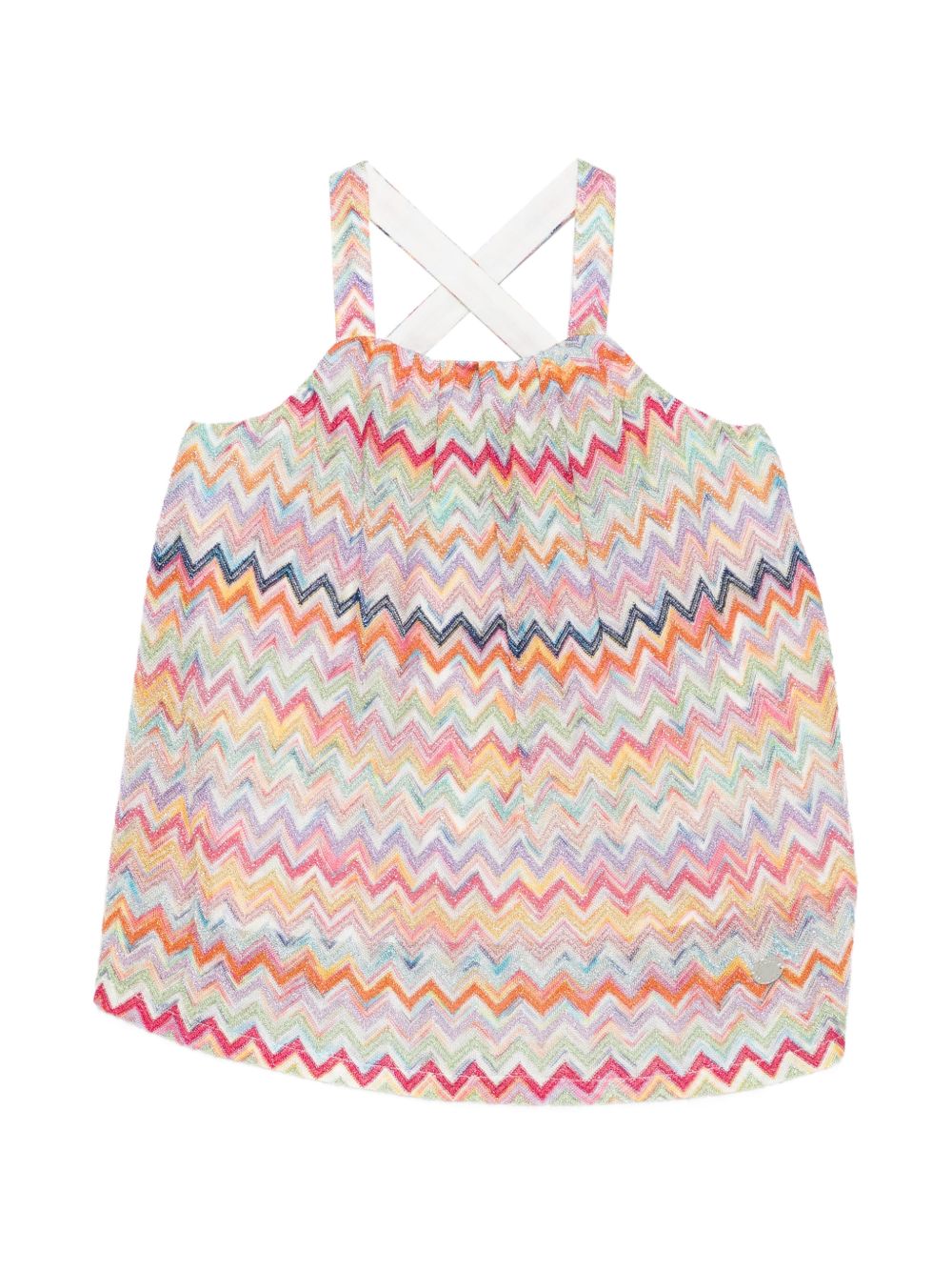 Top con motivo zig-zag, rosamulticolor, fasce incrociate, senza maniche, scollo quadrato.