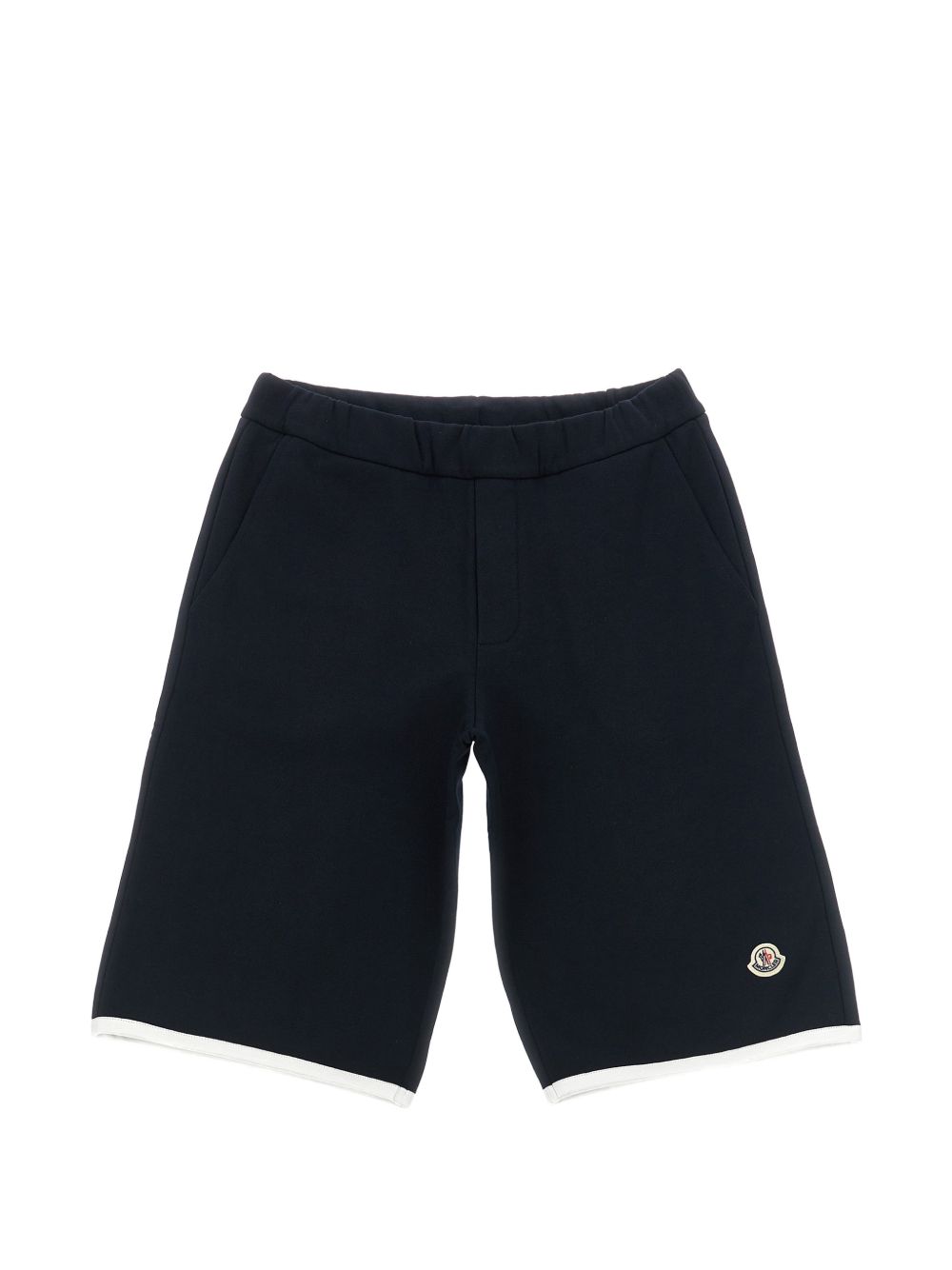 elastico in vita in jersey di cotone blu, toppa con logo e profili a contrasto