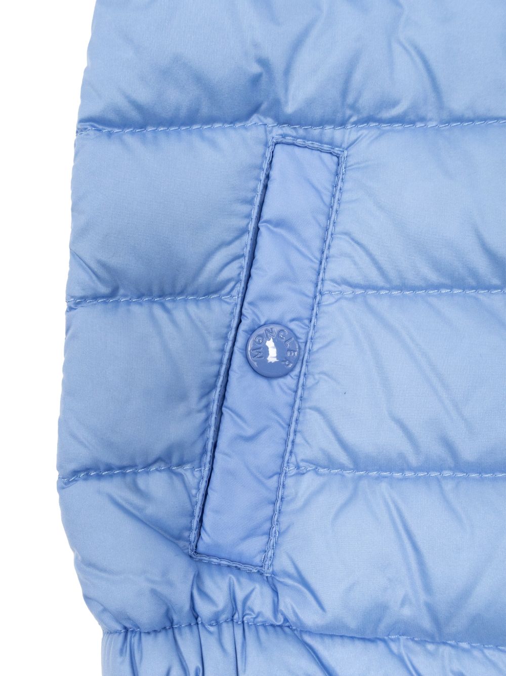 toppa con logo trapuntata azzurra, chiusura con cerniera, orlo elasticizzato, tasca a filetto