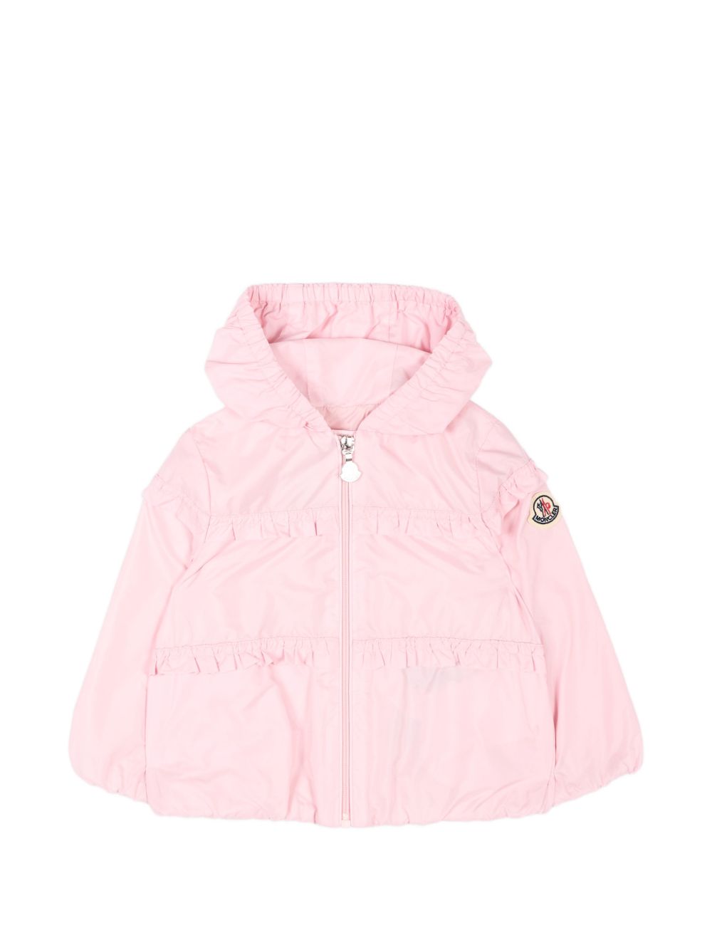 toppa con logo rosa, chiusura con zip, cappuccio con volant