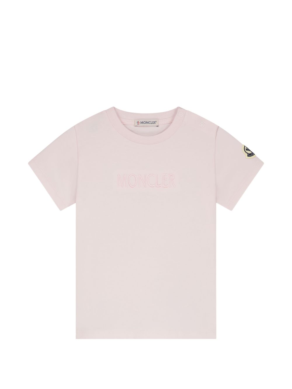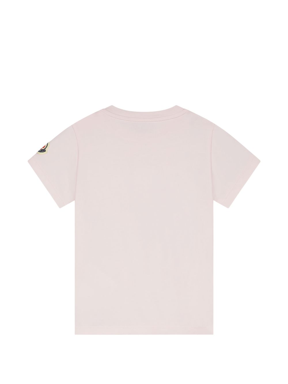 Dettaglio logo rosa chiaro, scollo rotondo, maniche corte