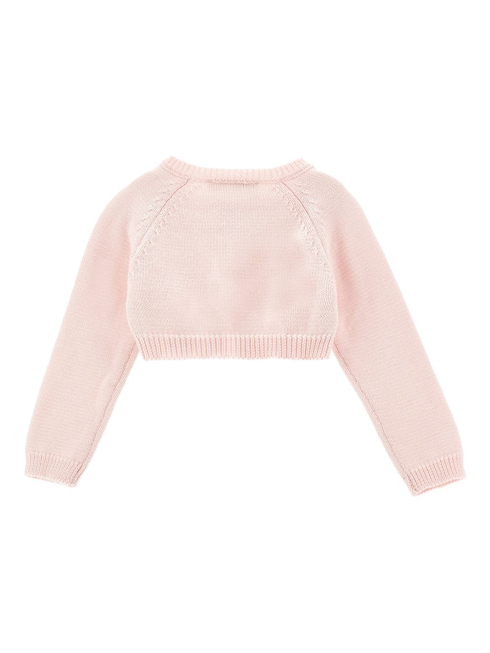 Cardigan con applicazione, rosa chiaro con fiocco, scollo tondo, maniche lunghe, lavorazione a maglia