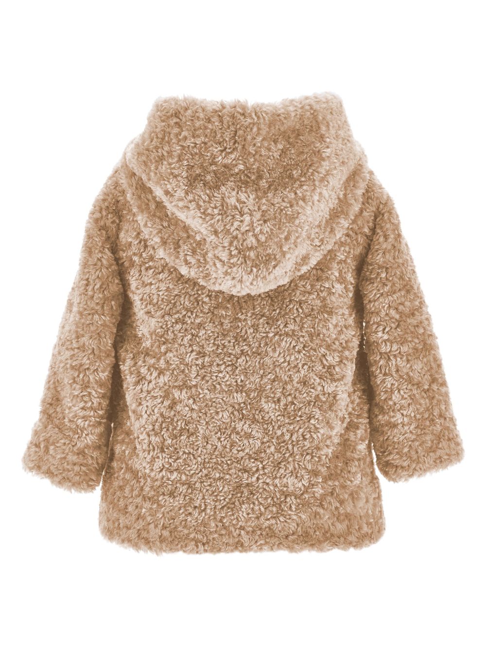 Teddy cammello chiusura frontale nascosta due tasche applicate sul davanti maniche lunghe fodera in raso