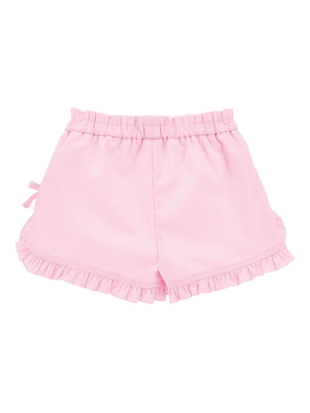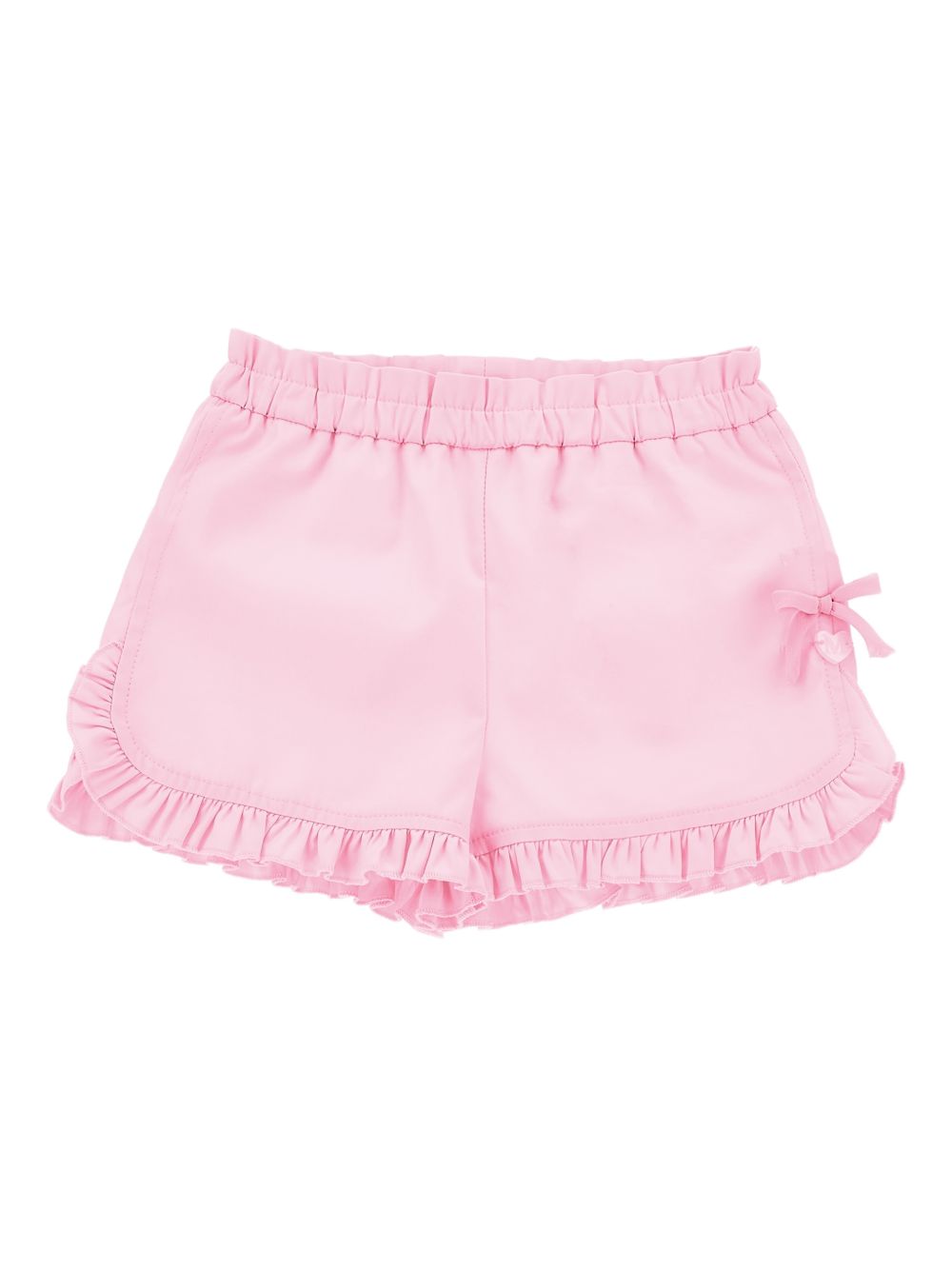 Shorts rosa con cintura elasticizzata, dettaglio fiocco, dettaglio cuore, orlo arricciato