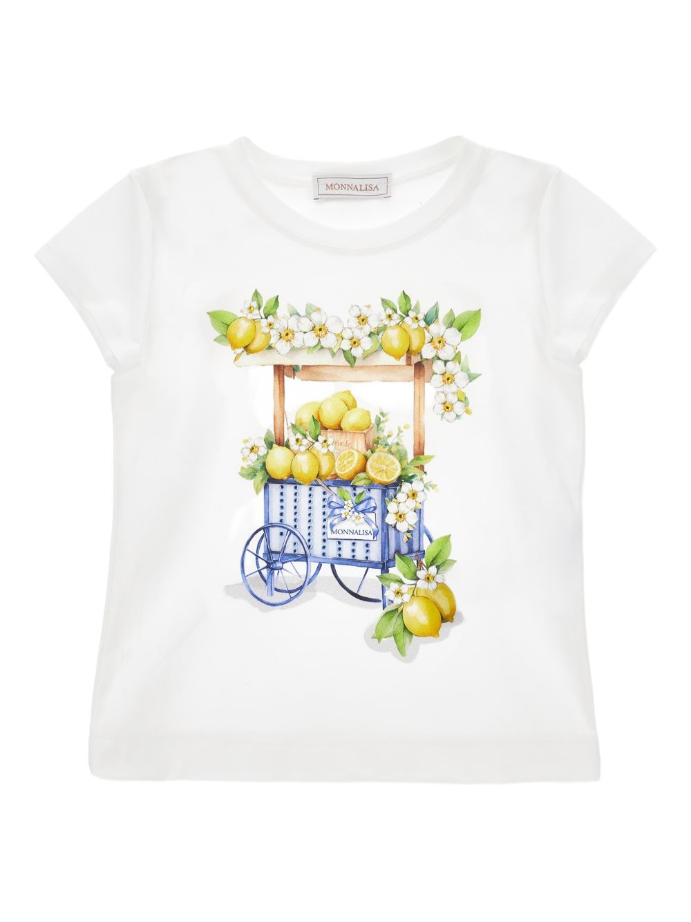 T-shirt bianca girocollo con stampa grafica frontale,manica corta