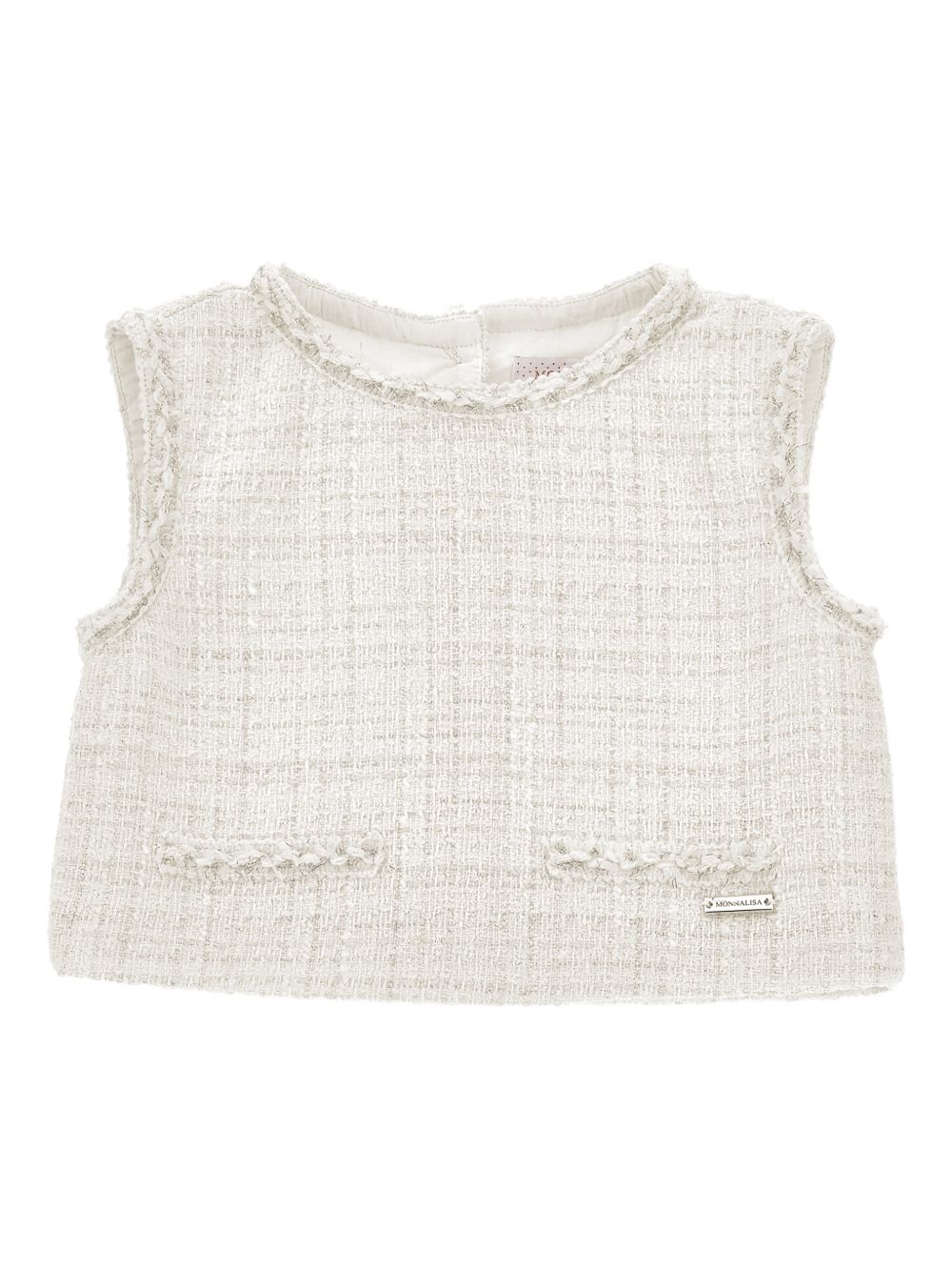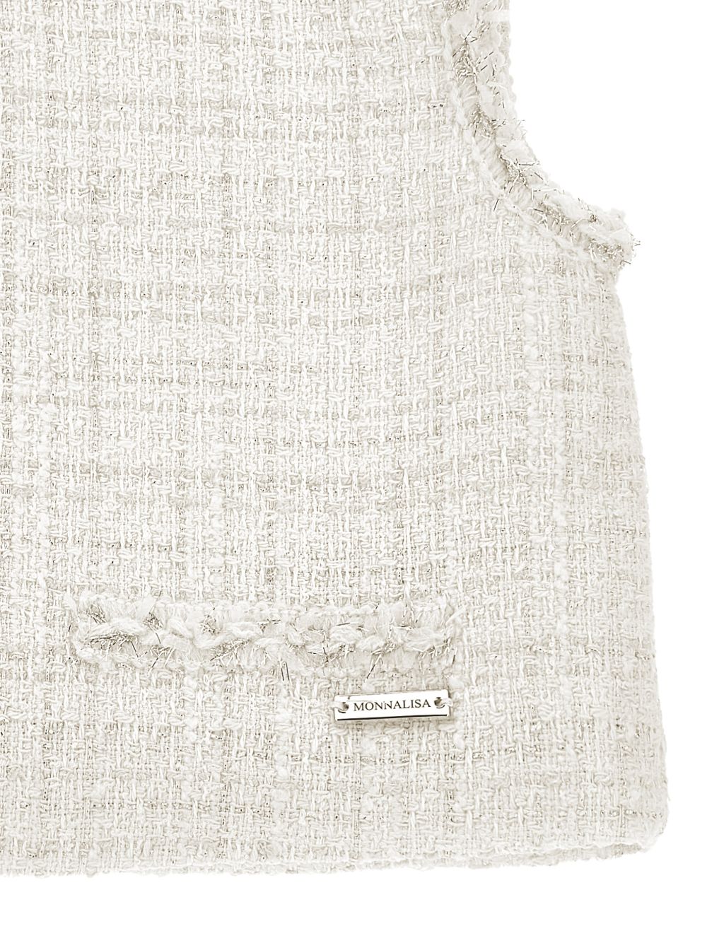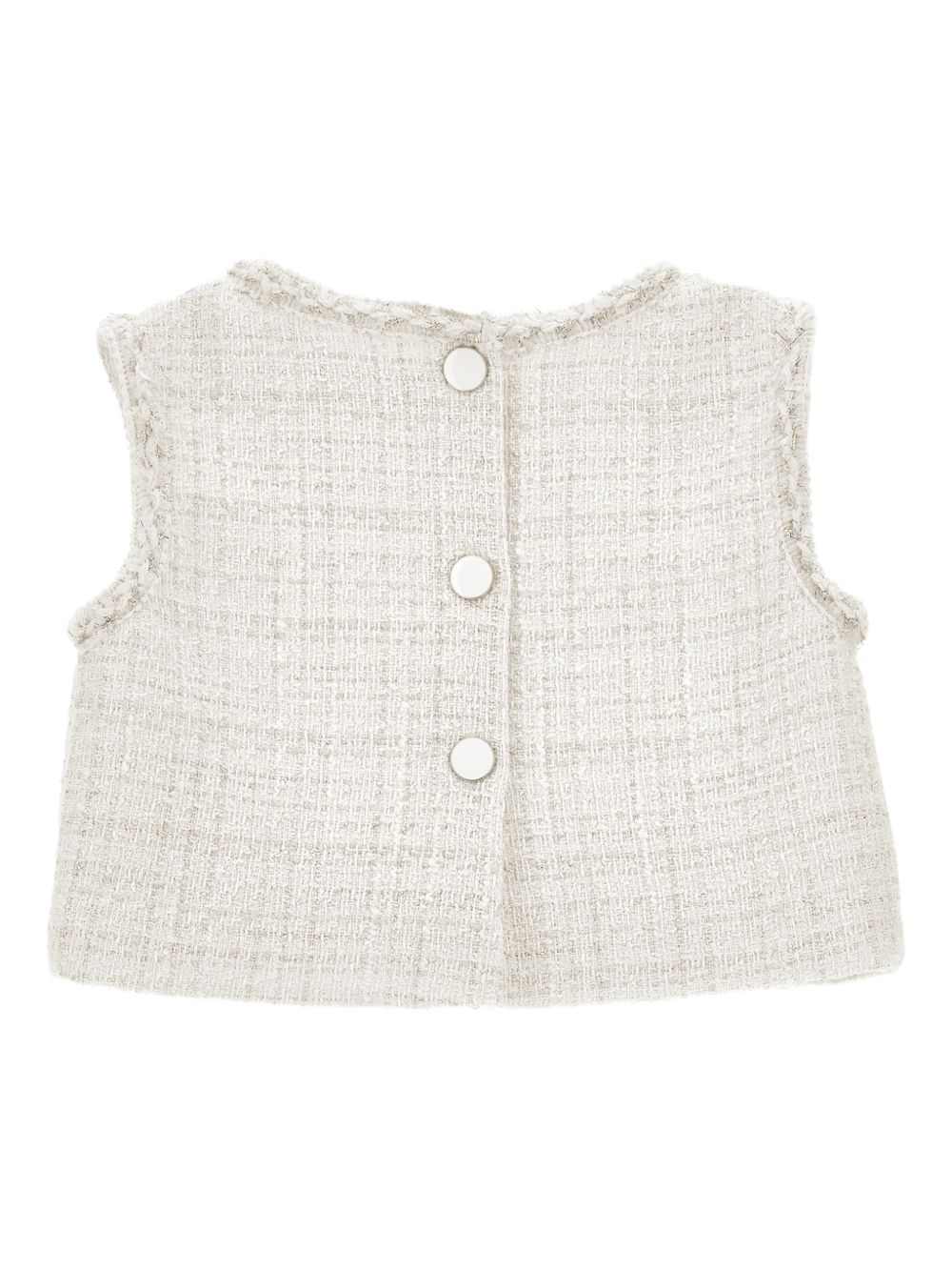 chiusura con bottoni e finiture sfrangiate bianco, senza maniche, placca con logo