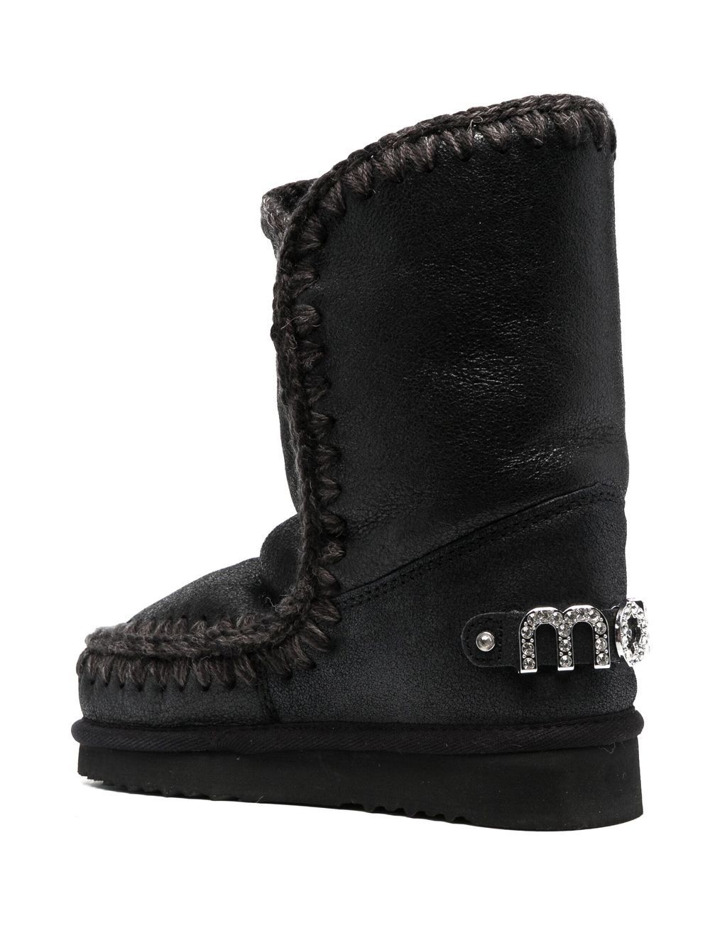 Stivali in pelle di pecora, design pull on, placca con logo color argento, altezza polpaccio, punta tonda e suola in gomma antiscivolo, nero.