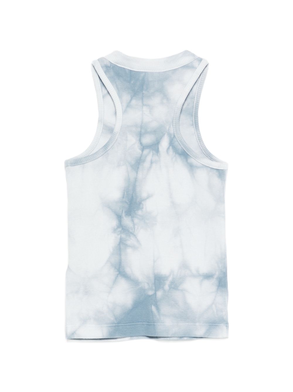 Modello senza maniche con stampa tie-dye blu chiaro/bianco e texture a coste