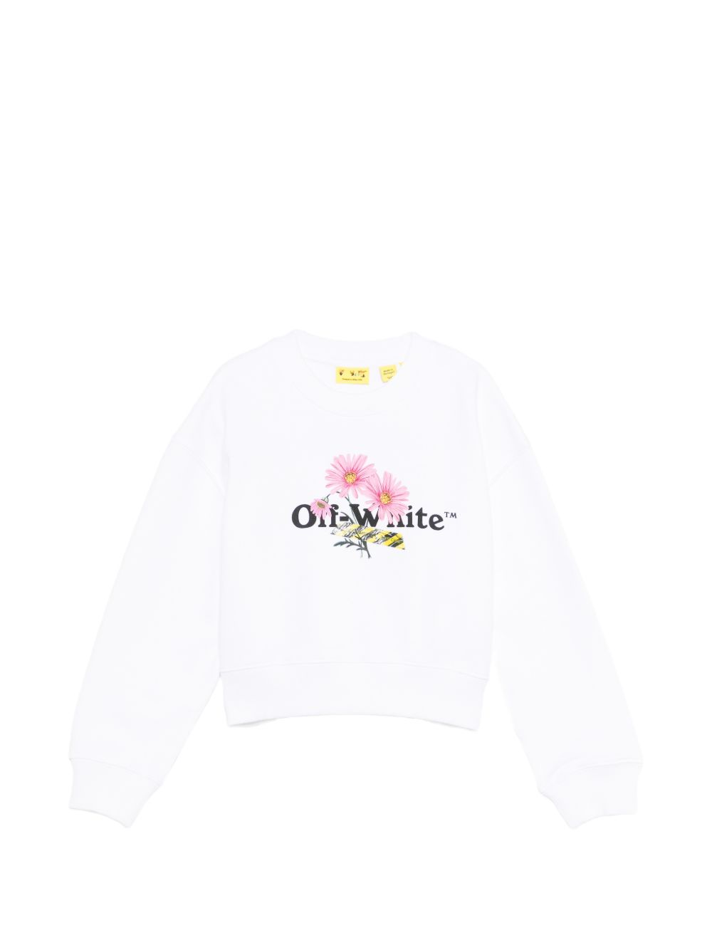 stampa floreale bianca scollo rotondo maniche lunghe orlo a coste polsini a coste