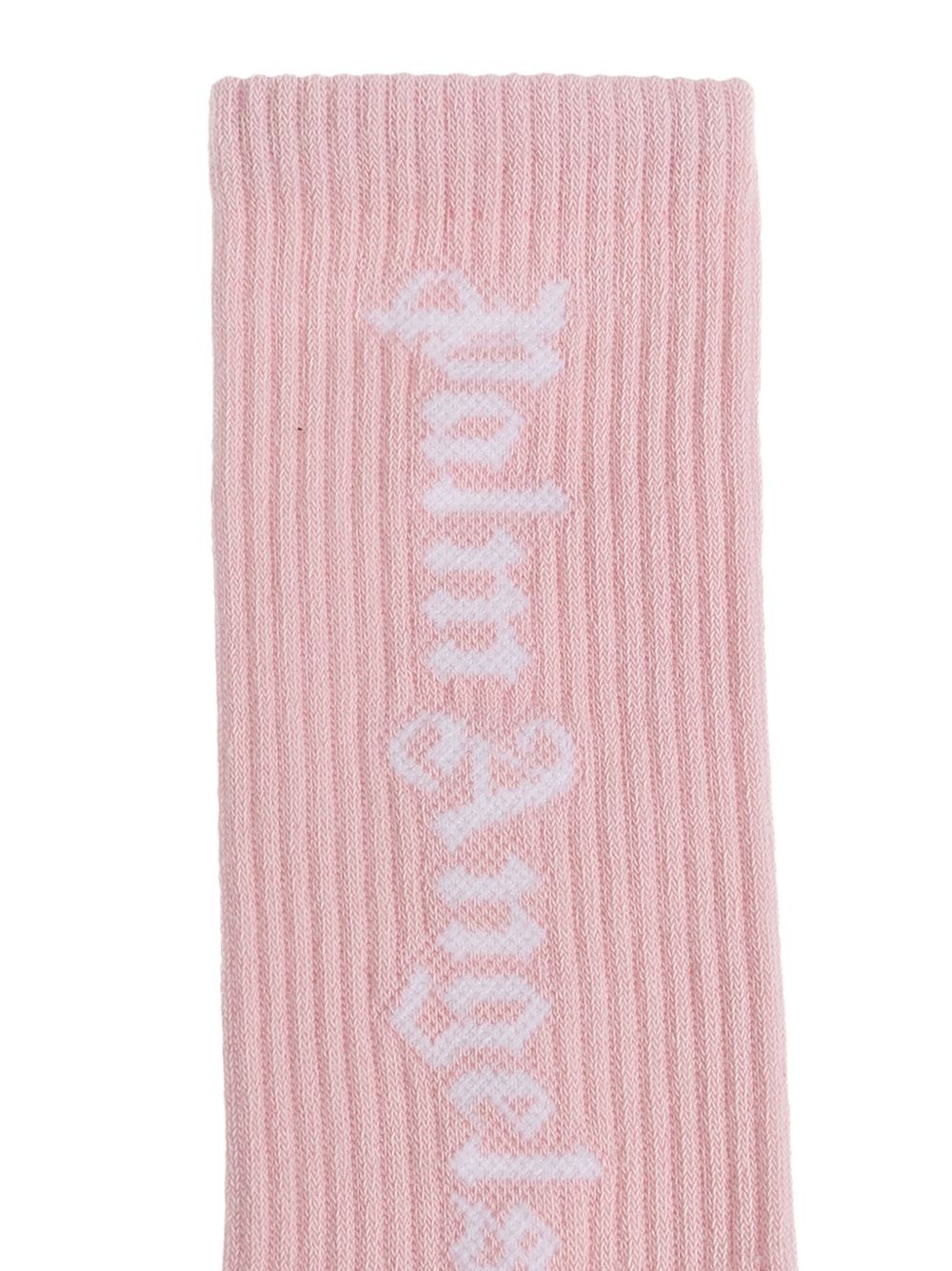 Calzini a coste, rosa, lavorazione in maglia, dettaglio logo