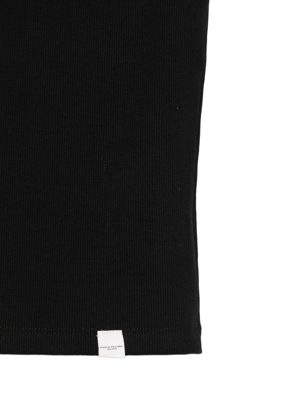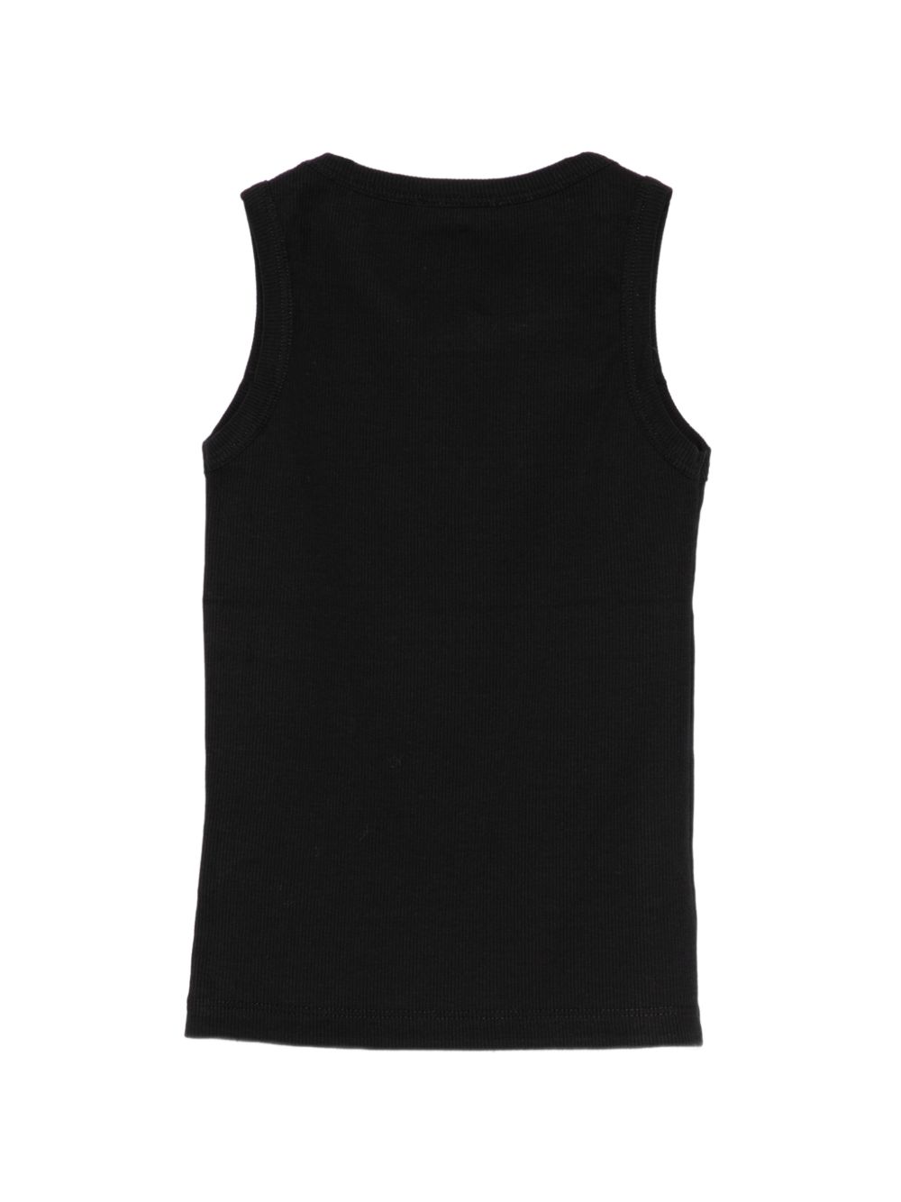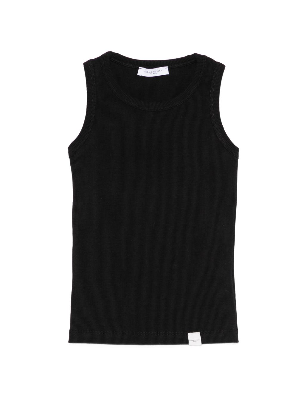 Canotta nero, trama a coste, girocollo, senza maniche, applicazione con logo