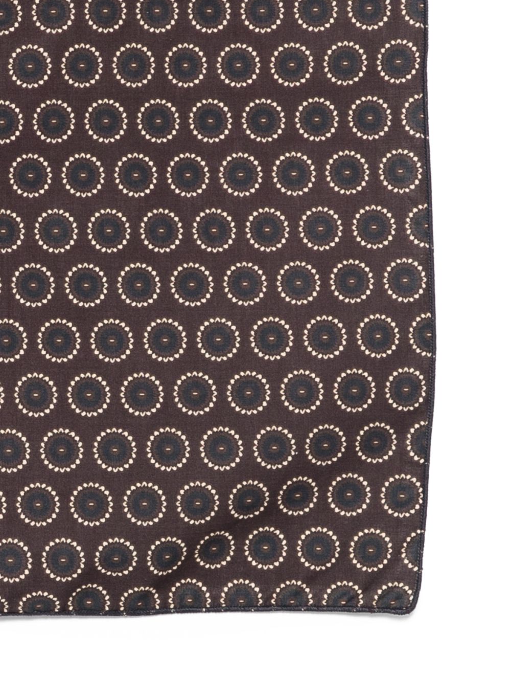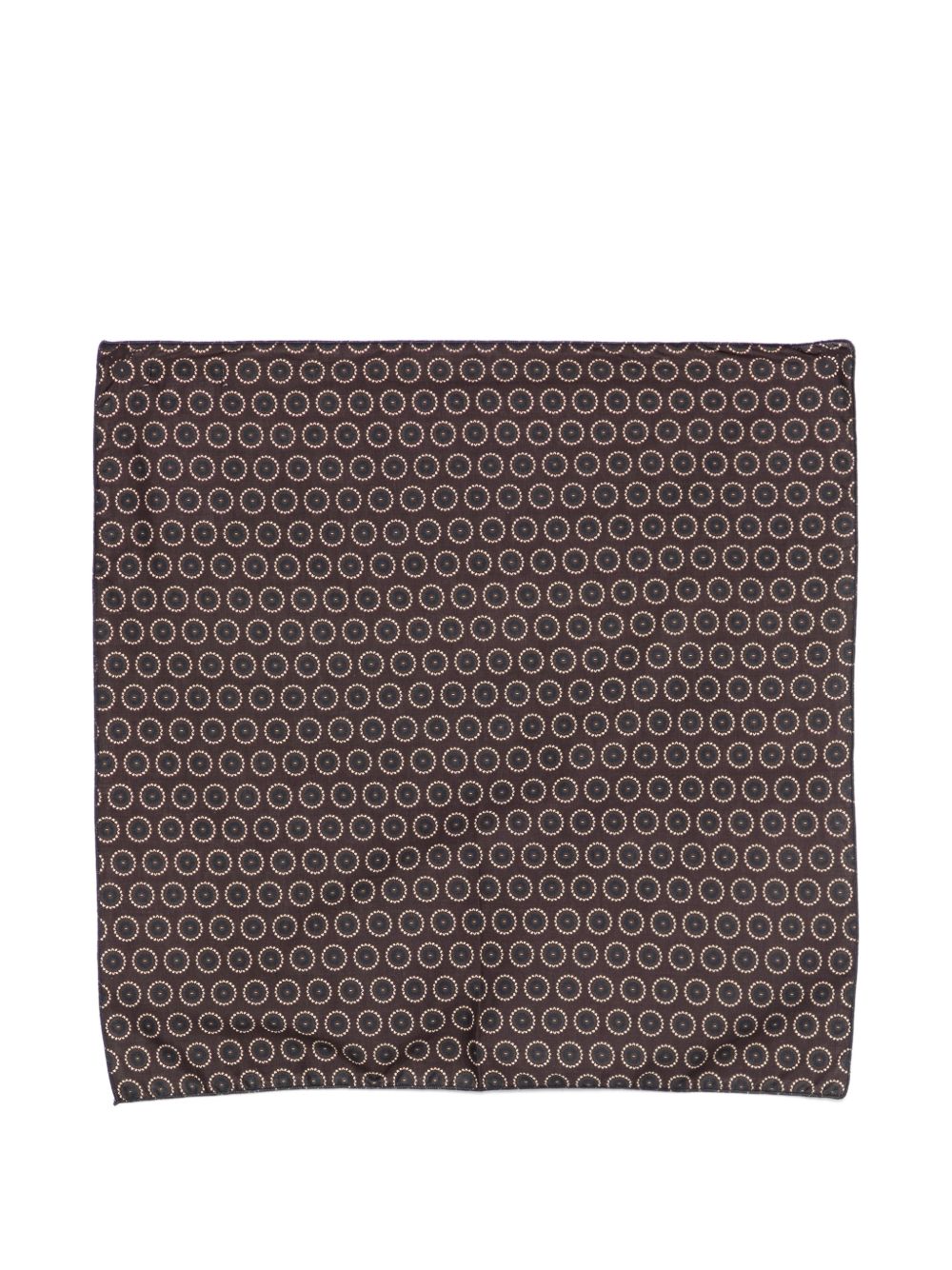 Foulard marrone scuro, motivo all-over, forma squadrata.
