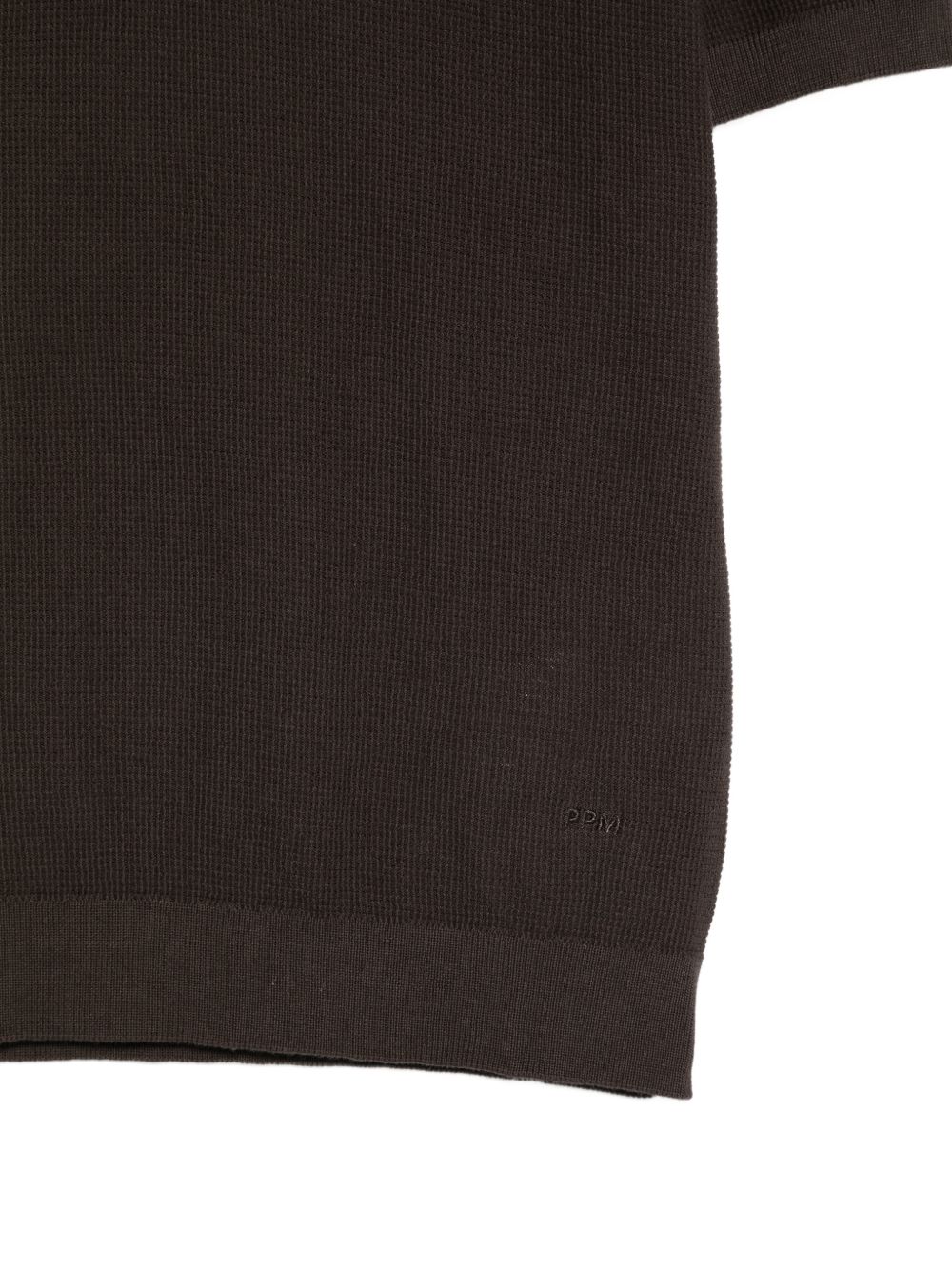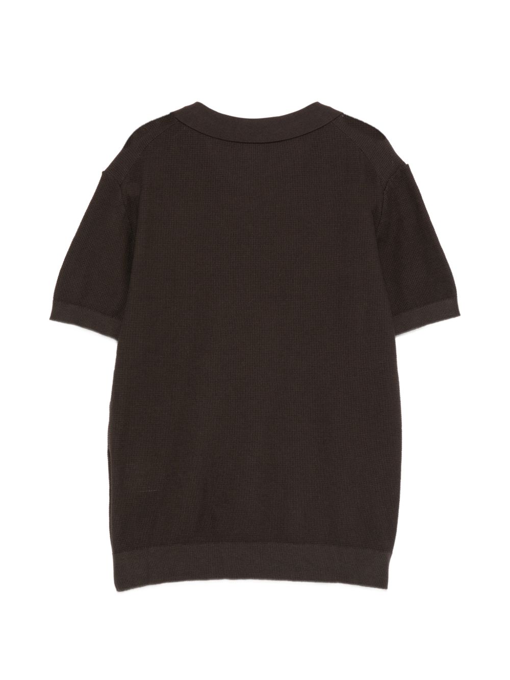 Polo marrone, colletto, scollo a V, in filo, maniche corte.