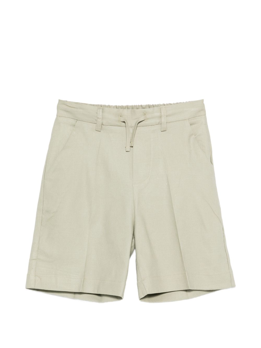 Shorts verde chiaro, passanti per cintura, tasca posteriore sagomata, tasche frontali, taglio dritto.