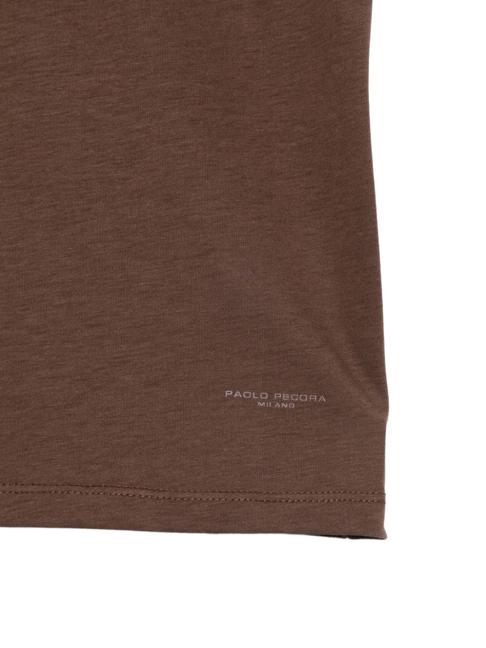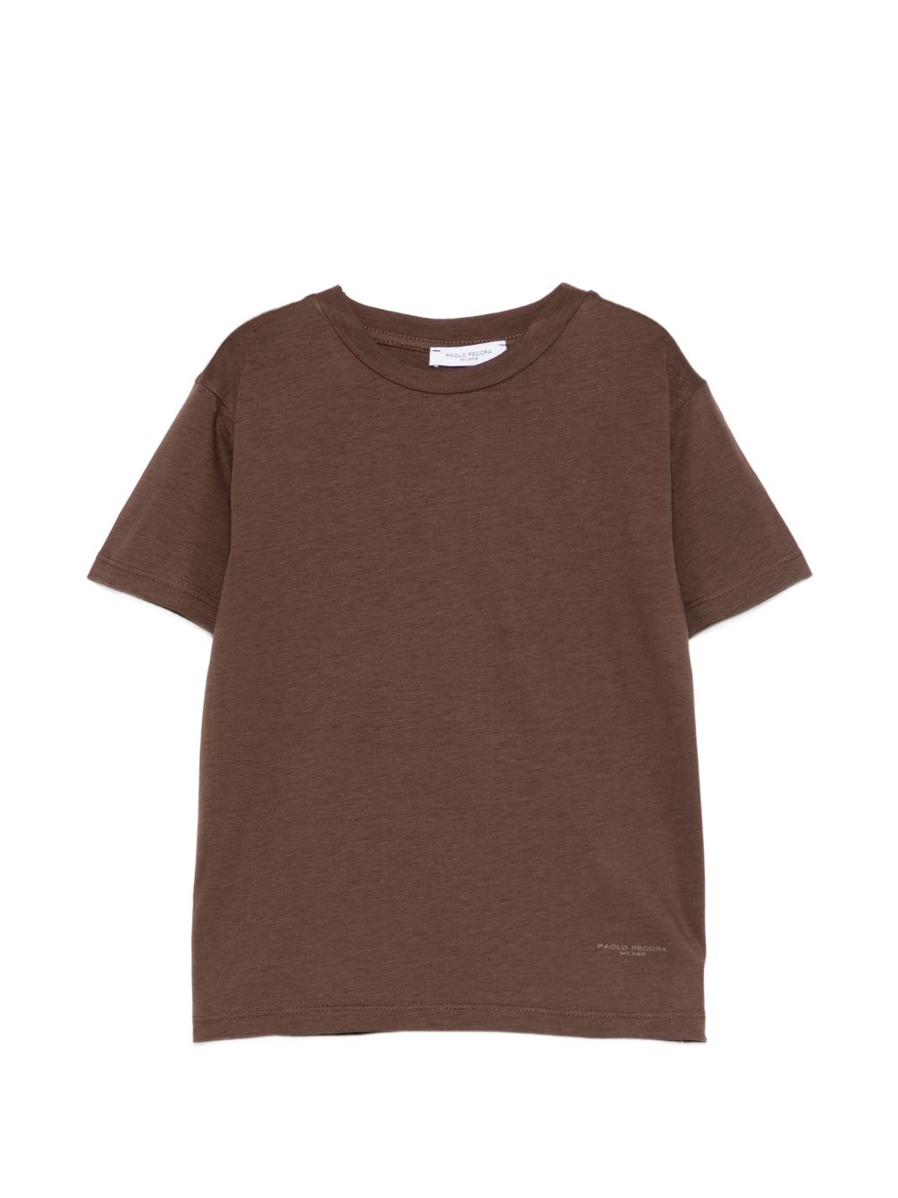 T-shirt marrone, girocollo, maniche corte.
