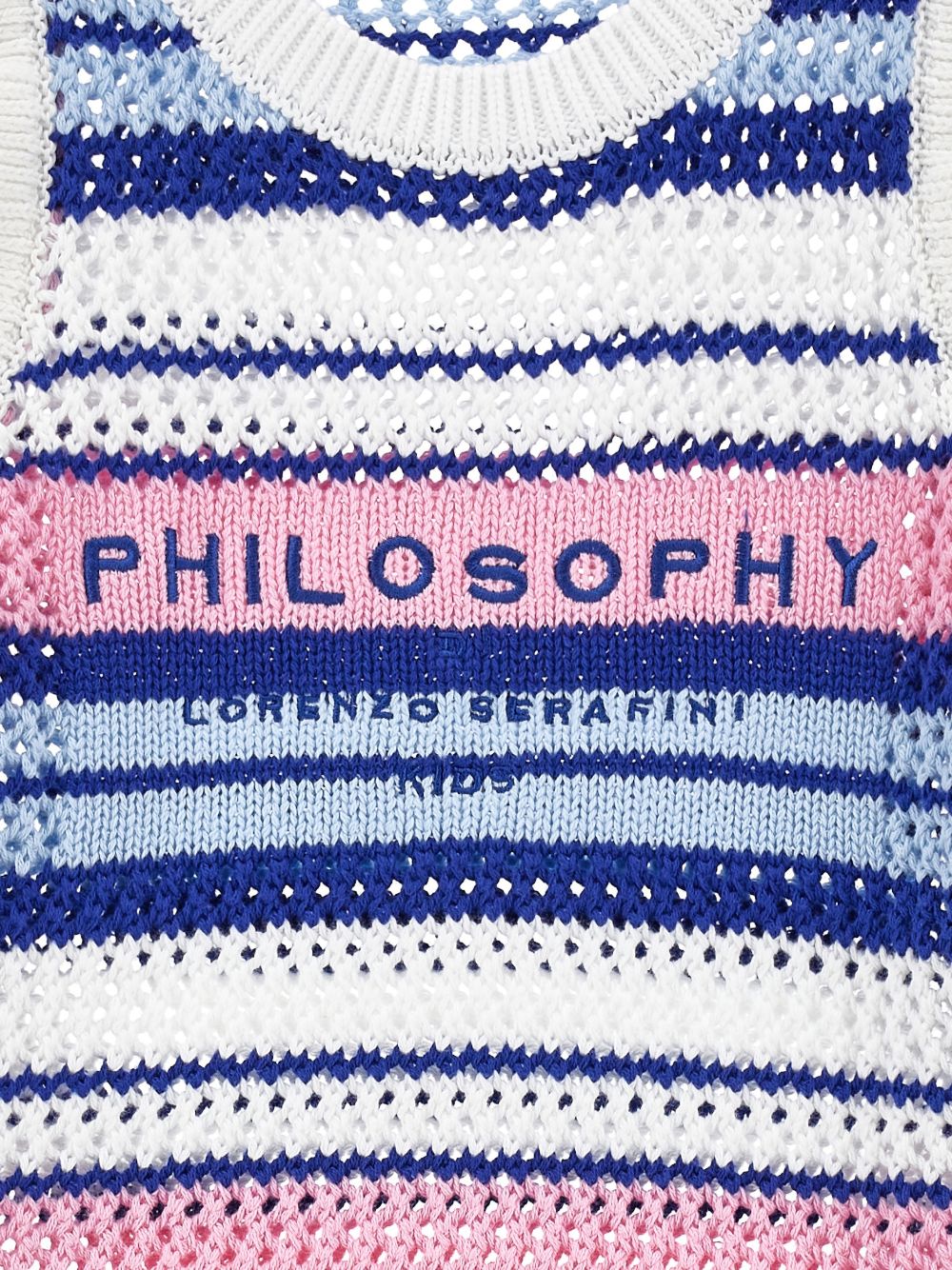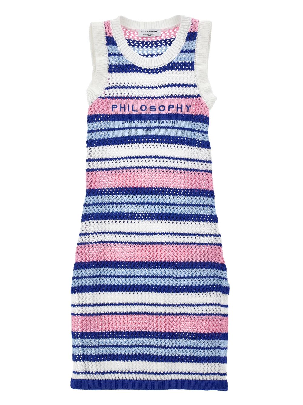 Abito in maglia girocollo senza maniche a righe blu e multicolor