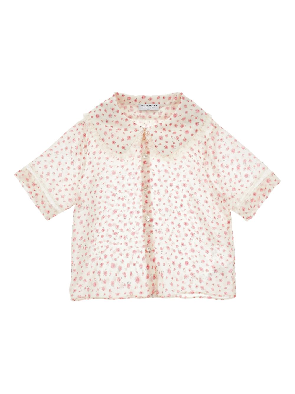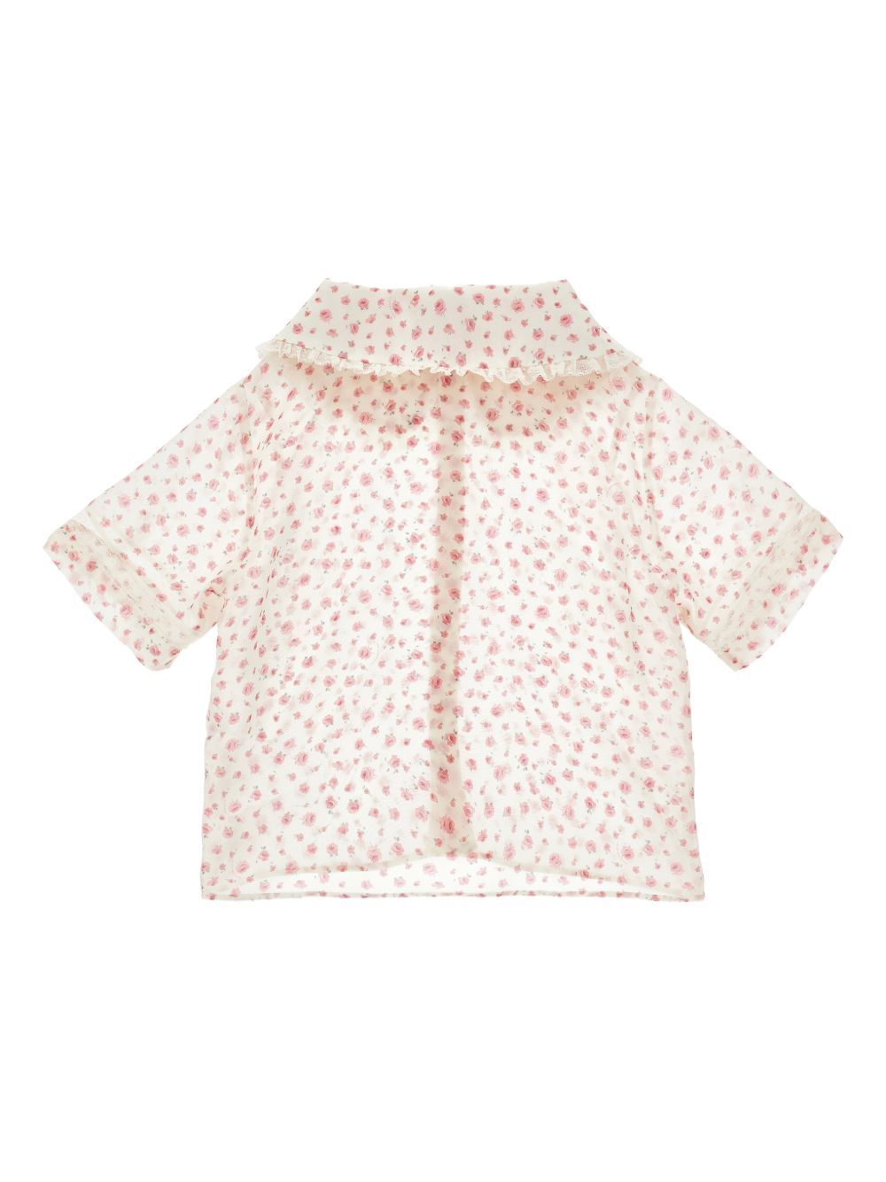 Camicia conchiusura con bottoni, colletto alla Peter Pan, maniche corte, stampa floreale bianca
