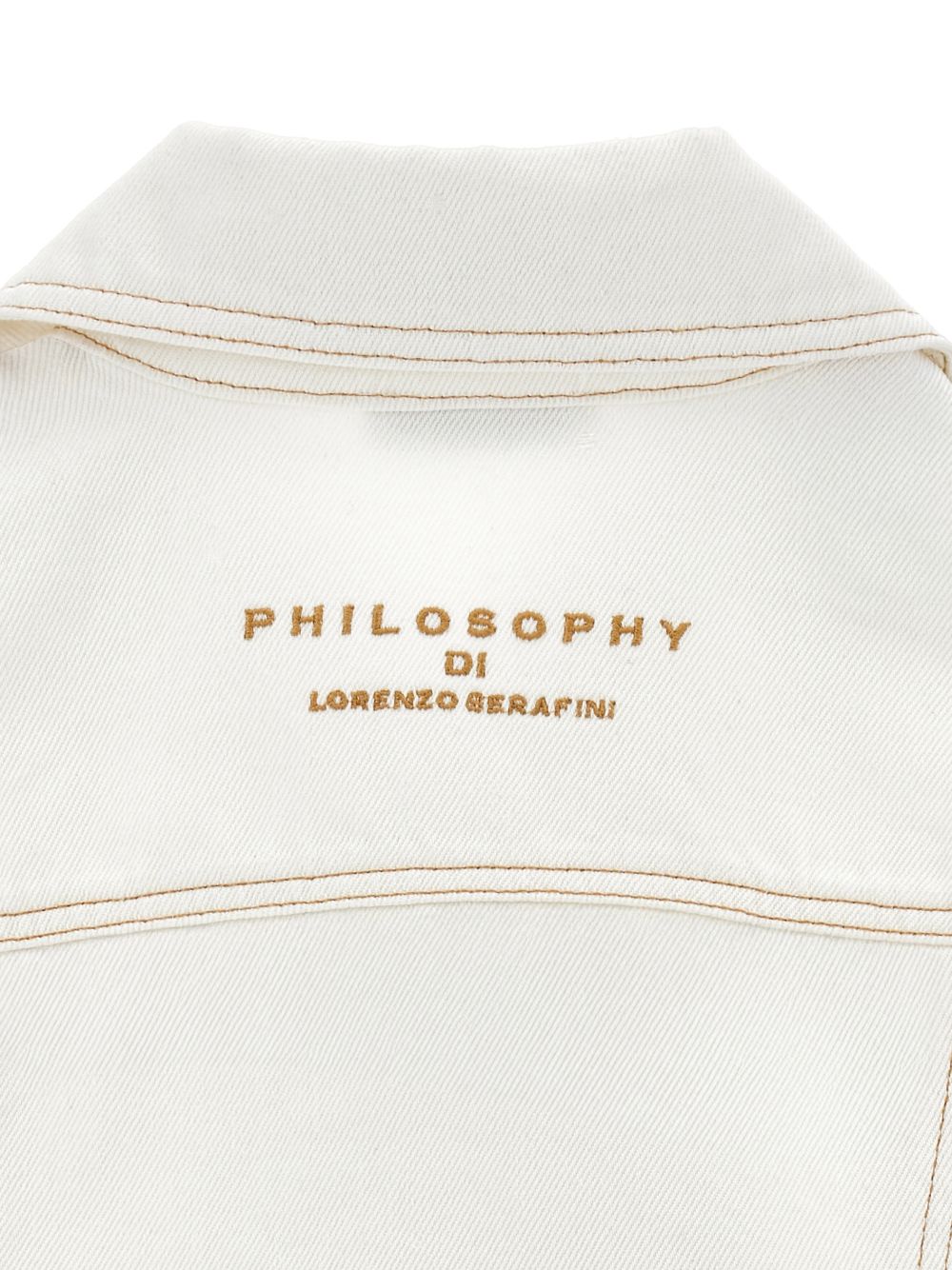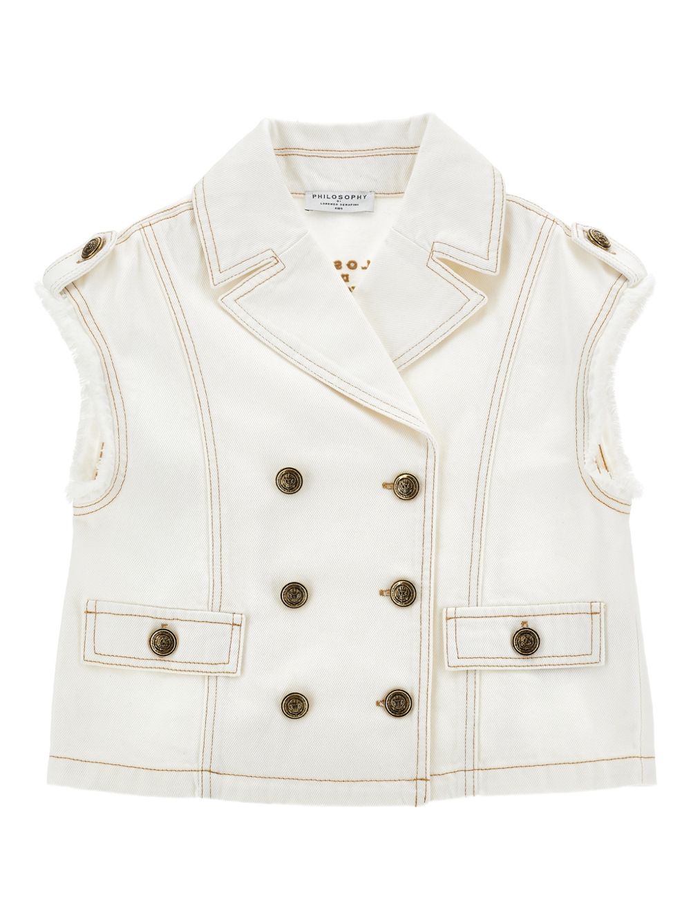 Gilet bianco doppiopetto chiusura con bottoni tasche con patta dettagli sfilacciati impunture