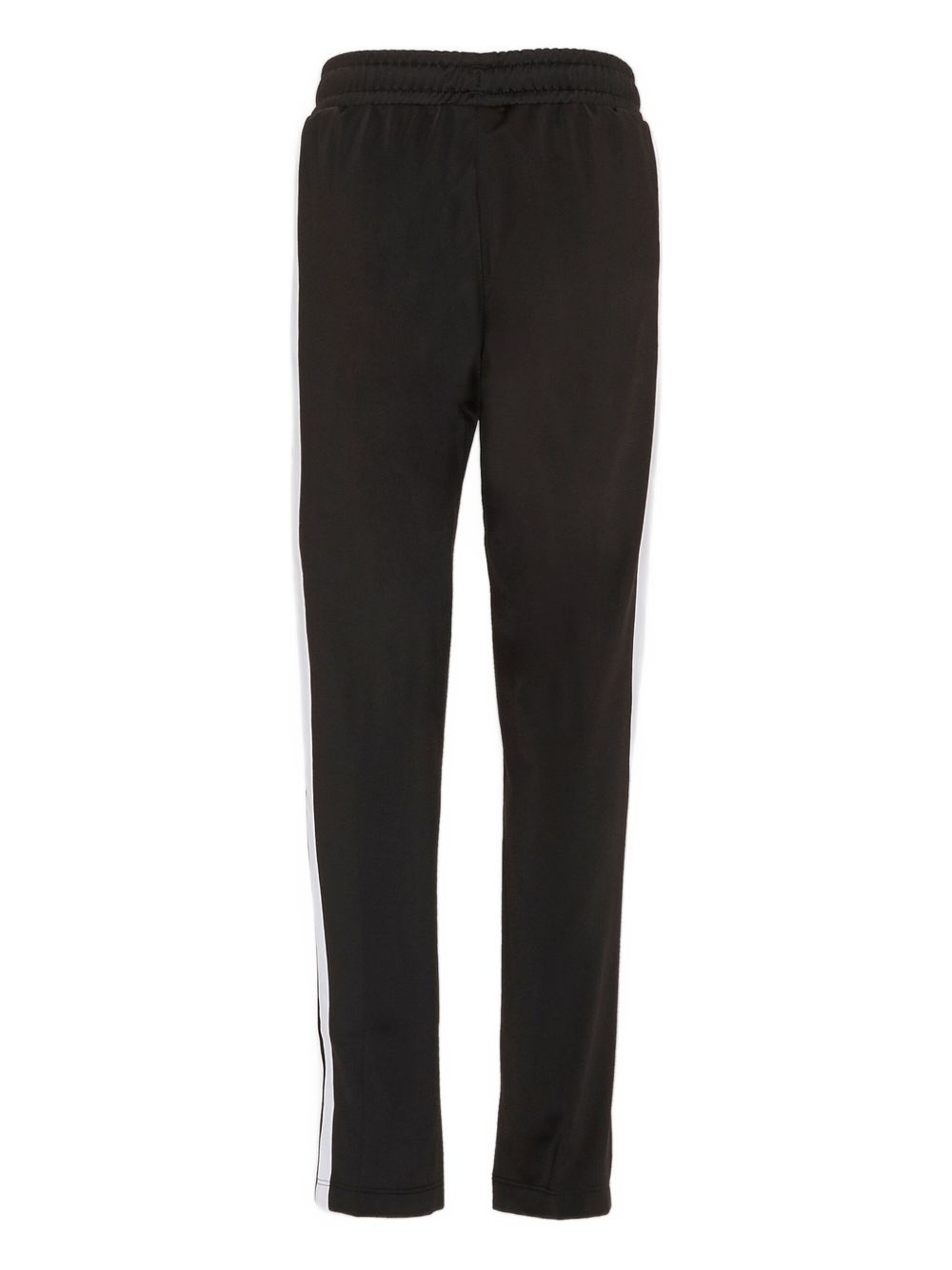 Pantalone con dettaglio a righe nere, dettaglio logo, chiusura con zip, tasche laterali, elastico in vita.