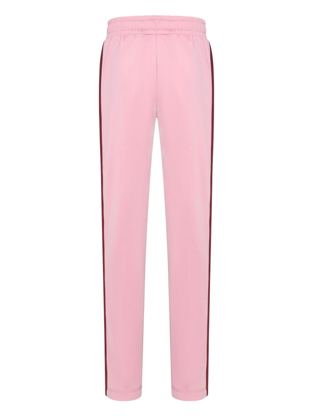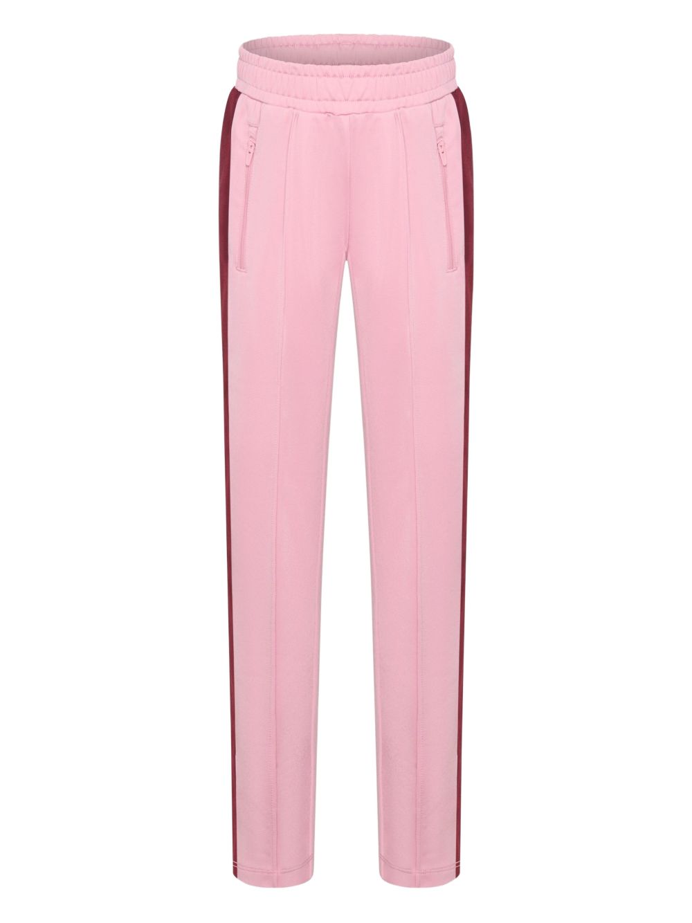 Pantalone rosa, righe laterali, vita elasticizzata.