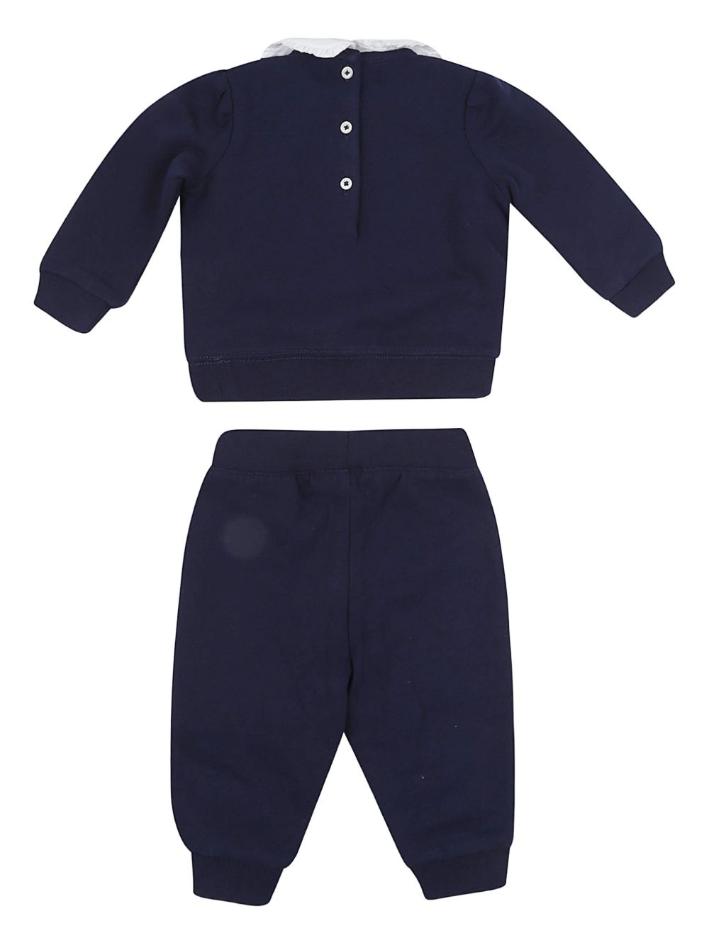 Set con colletto blu navy, chiusura con bottoni, coulisse in vita, maniche lunghe
