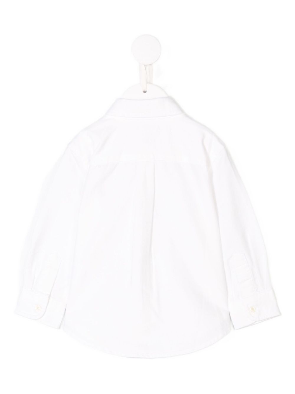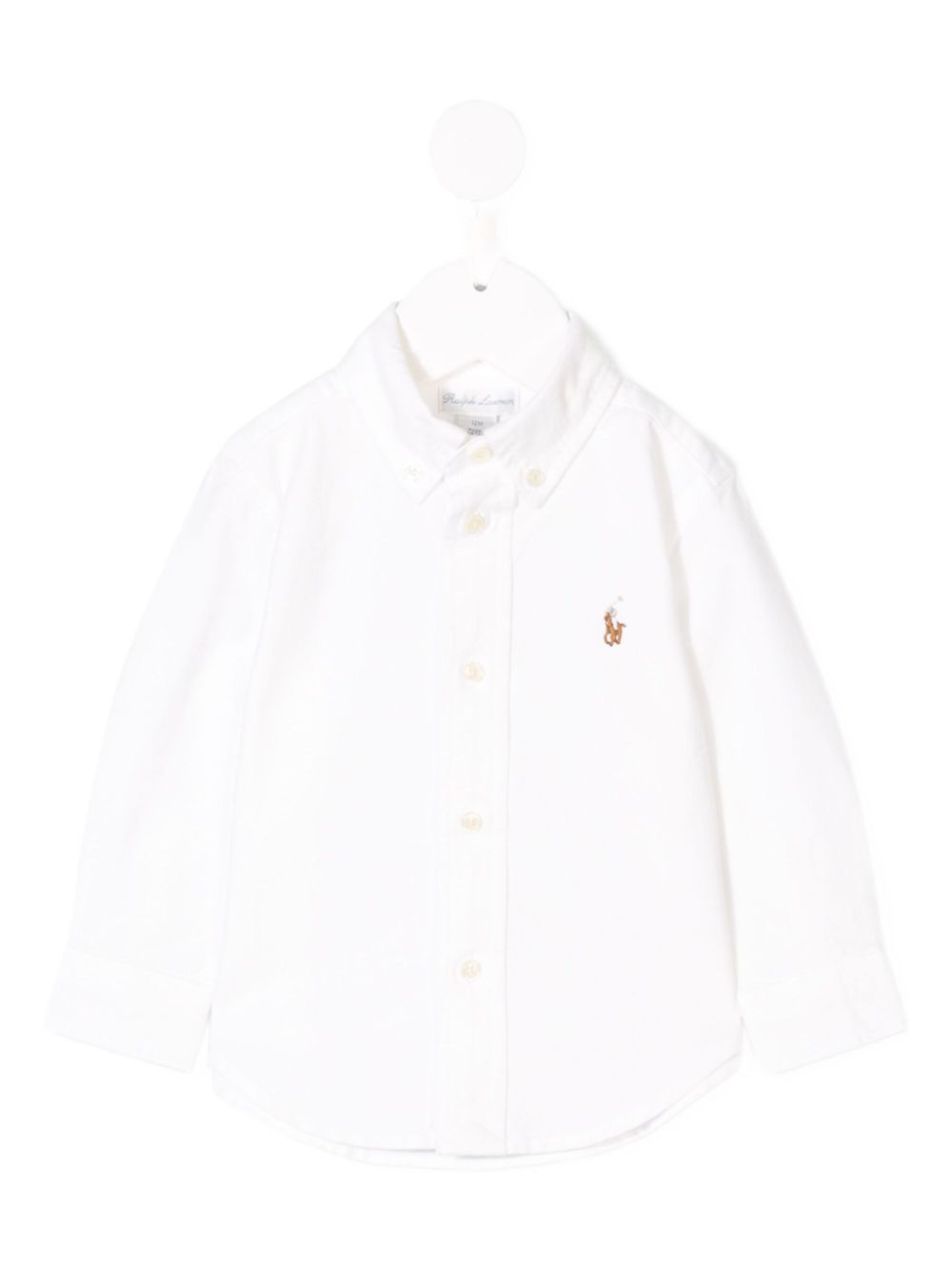 Chiusura frontale con bottoni, colletto button-down, polsini con bottoni, motivo distintivo del pony Polo.