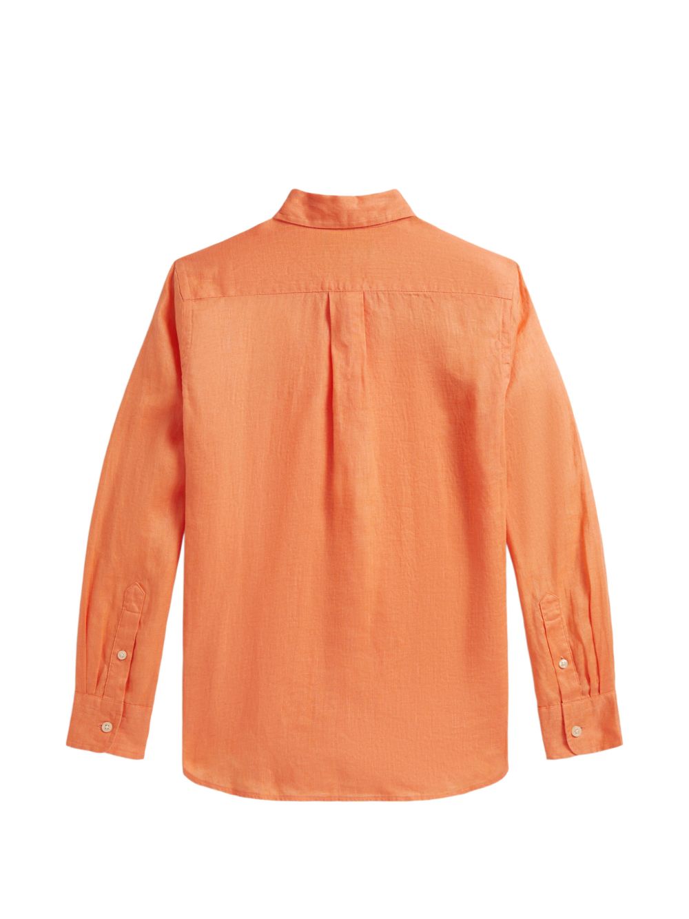 Camicia con colletto button-down, arancio, placca con abbottonatura, maniche lunghe, polsini con abbottonatura, carrè posteriore plissettato.