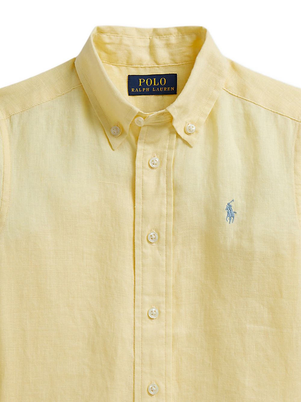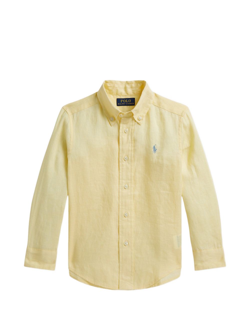 Camicia con logo ricamato, giallo, maniche lunghe, lino, chisura a bottoni.
