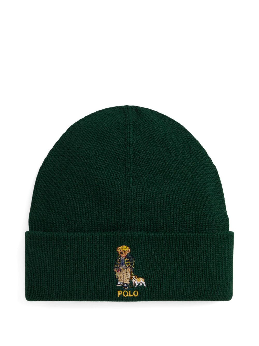 Cappello con ricamo Polo Bear, verde scuro, dettaglio con logo, design a coste