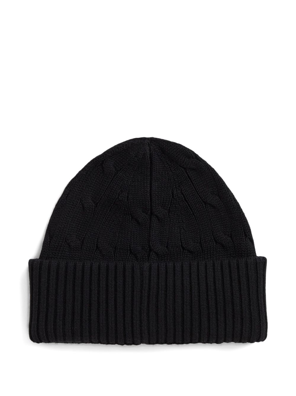 Cappello in maglia a trecce, nero, tesa a coste, risvolto, motivo Polo Pony