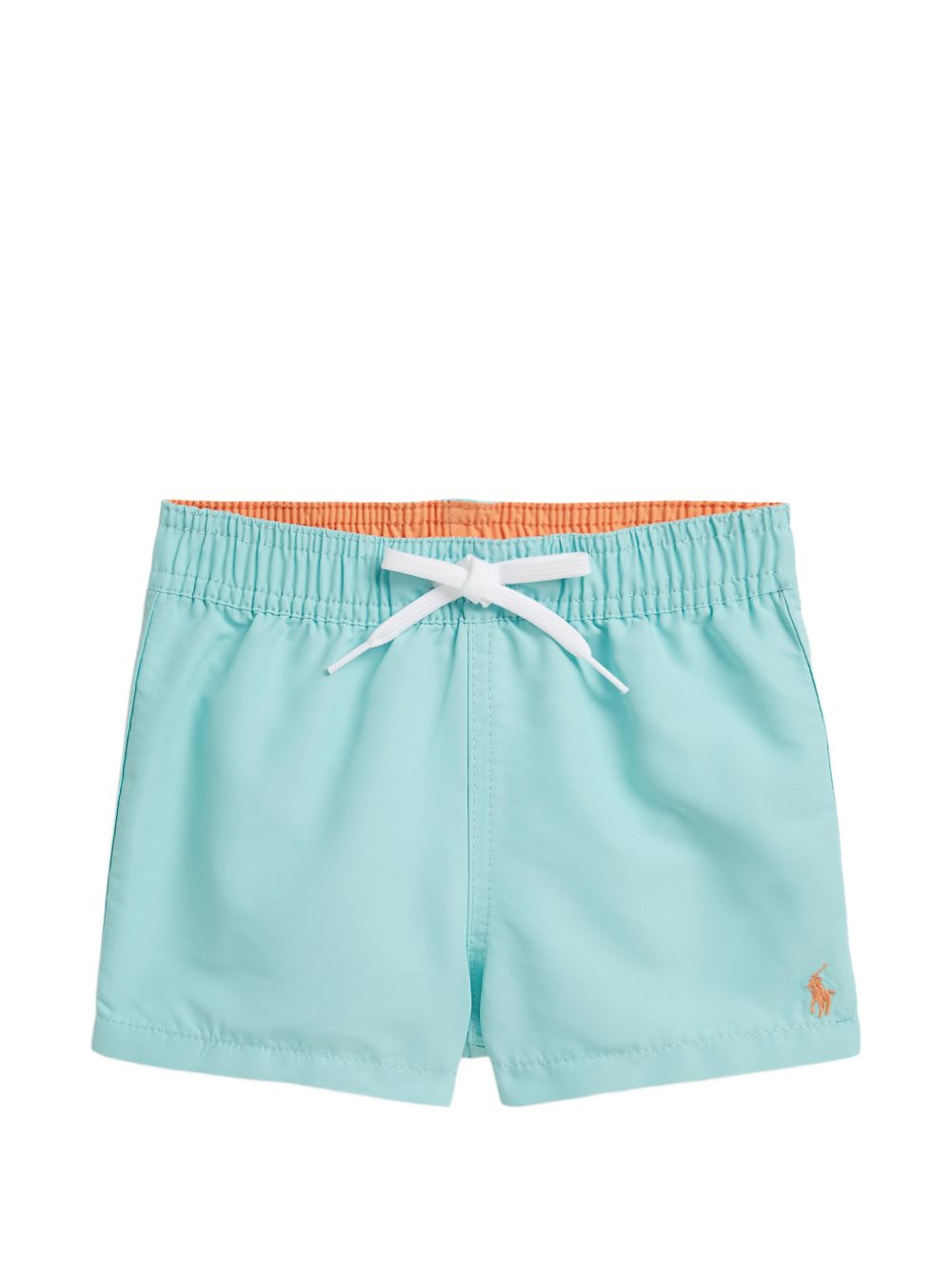 Costume con stampa logo, vita elasticizzata, azzurro.