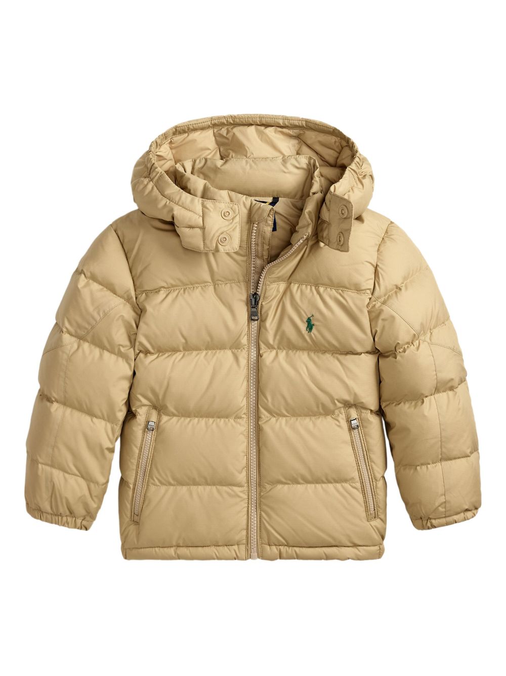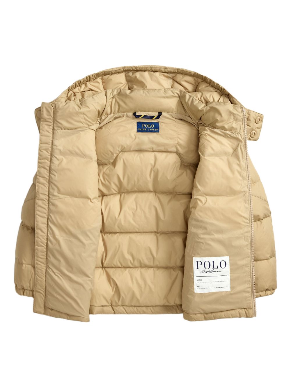 Giubbotto modello trapuntato color cachi, chiusura con zip, maniche lunghe, logo ricamato