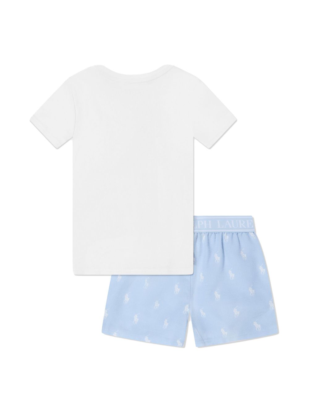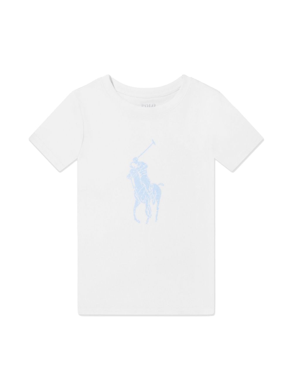 maglia blu girocollo a maniche corte con elastico in vita e logo