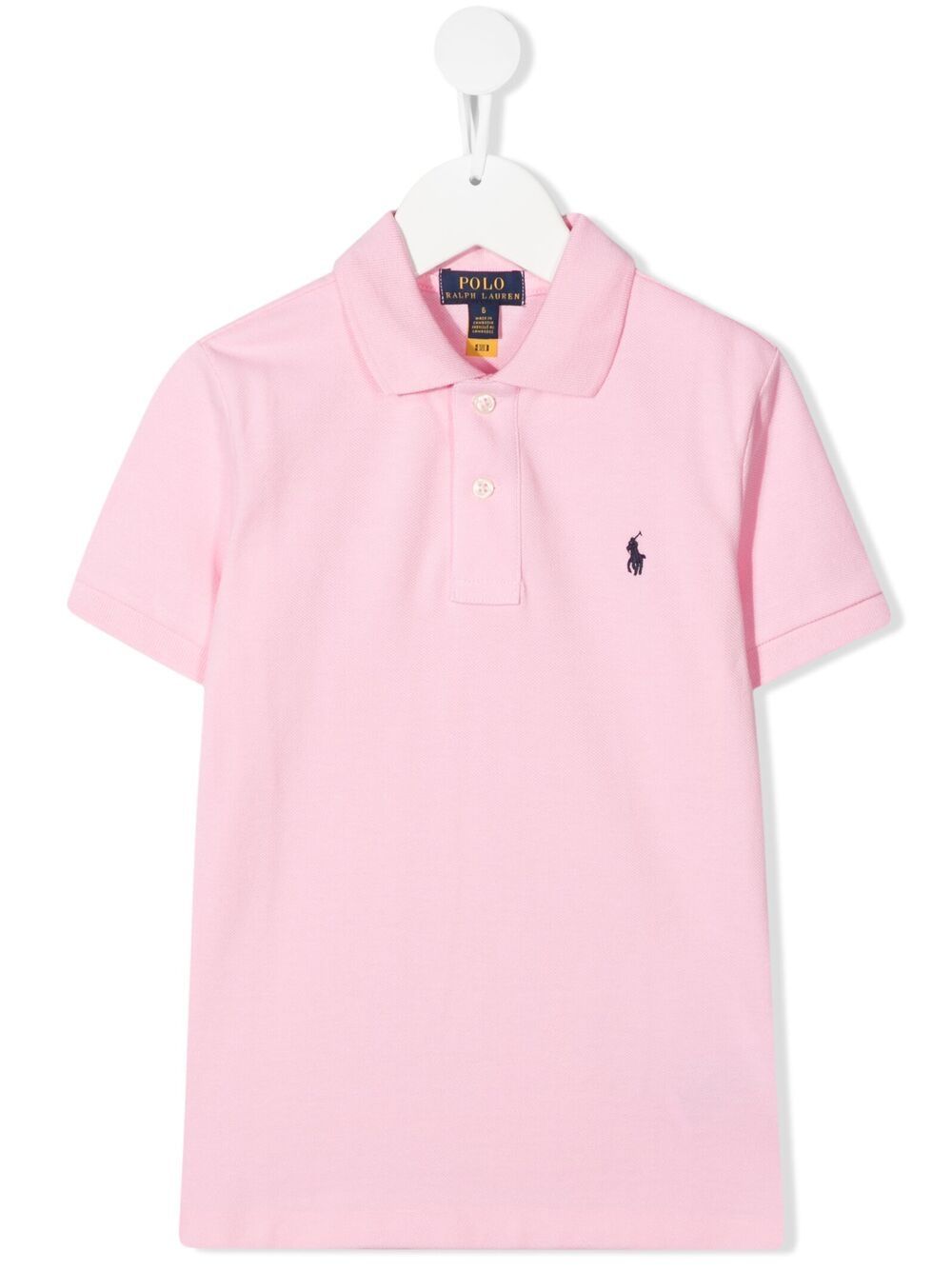 Polo con colletto stile polo, logo ricamato e falsatura frontale con abbottonatura, in cotone, rosa.