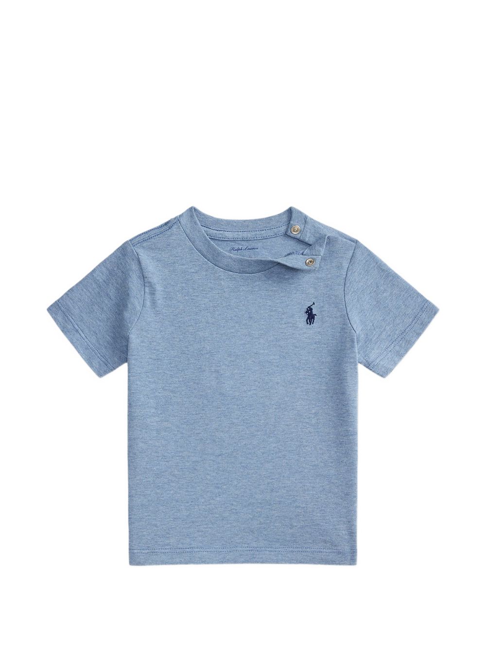 T-shirt con dettaglio ricamatoblu,scollo tondo, maniche corte, girocollo, chiusura con bottoni.