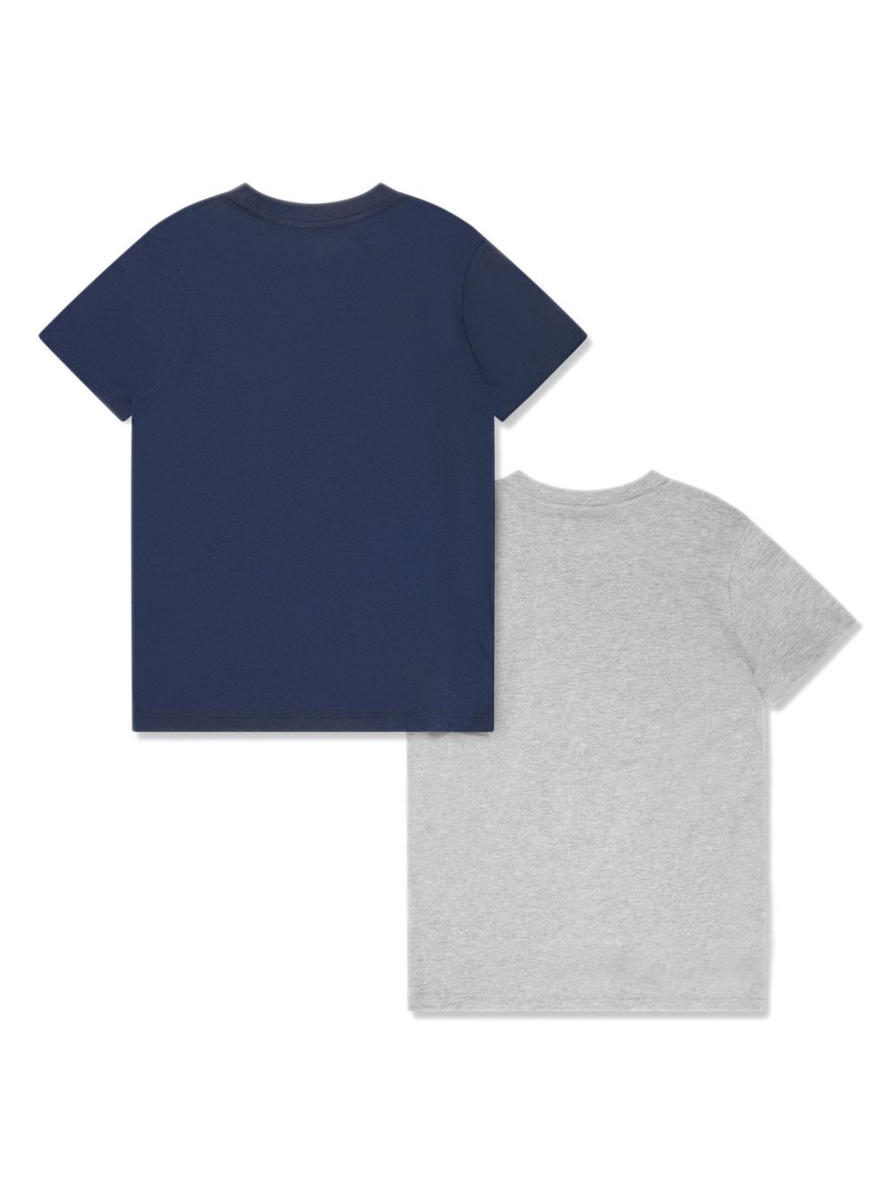 Blu navy, grigio cenere, cotone, ricamo con logo frontale, girocollo, maniche corte e orlo dritto