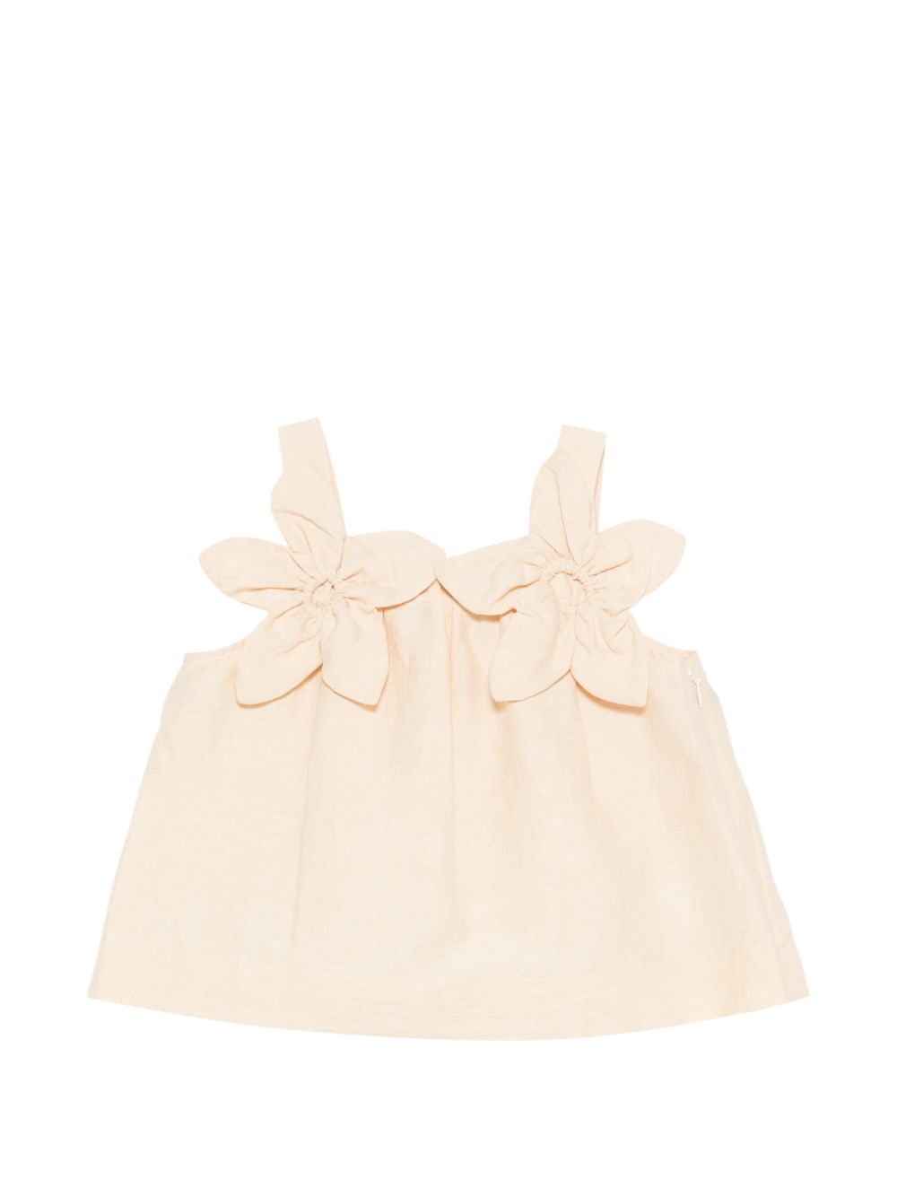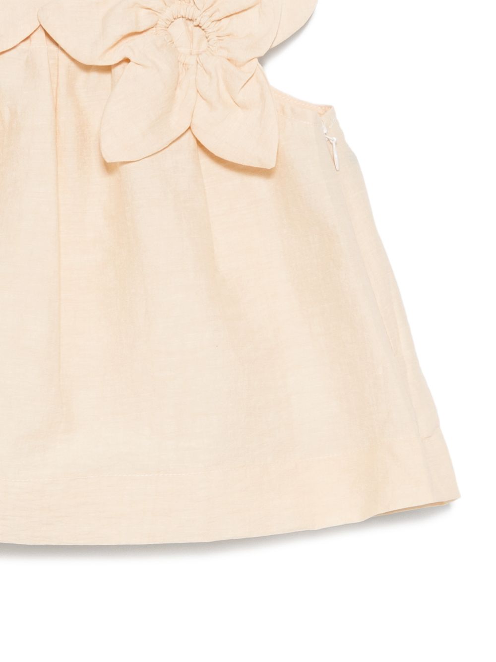 Top con dettaglio floreale beige, chiusura laterale con zip