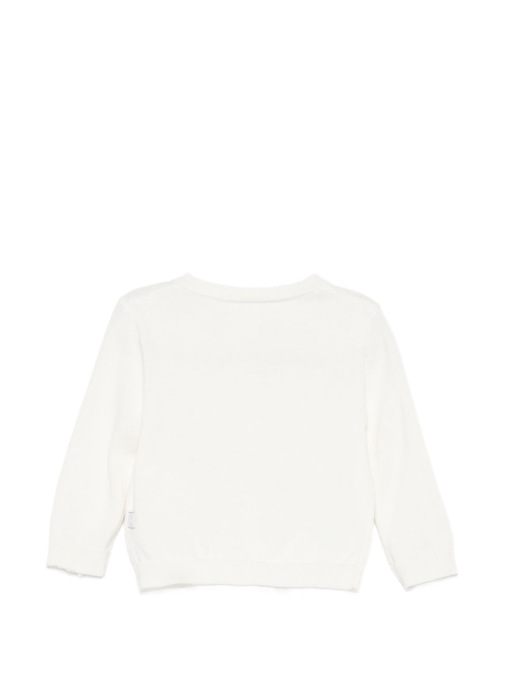 Cardigan avorio, girocollo, chiusura a bottoni, applicazione fiori.