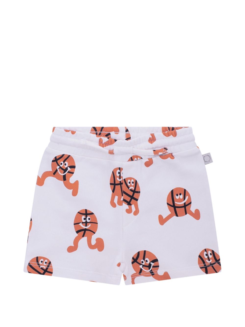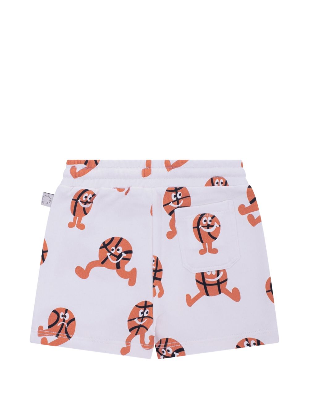 Pantaloncini con stampa da basket con elastico in vita con stampa da basket bianca, tasca posteriore applicata