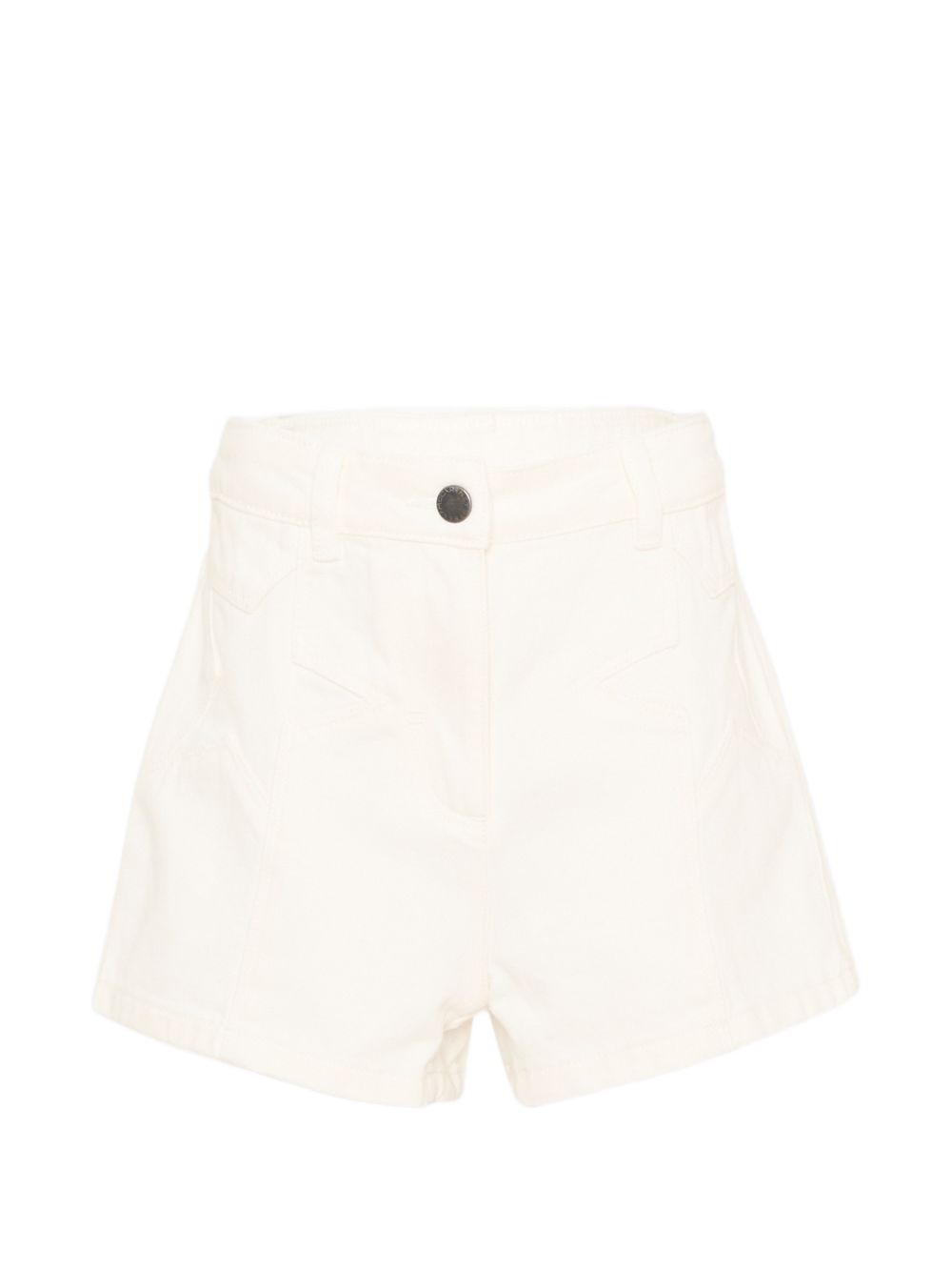 Shorts con tasche, passanti per cintura ,color avorio, chiusura con bottoni.