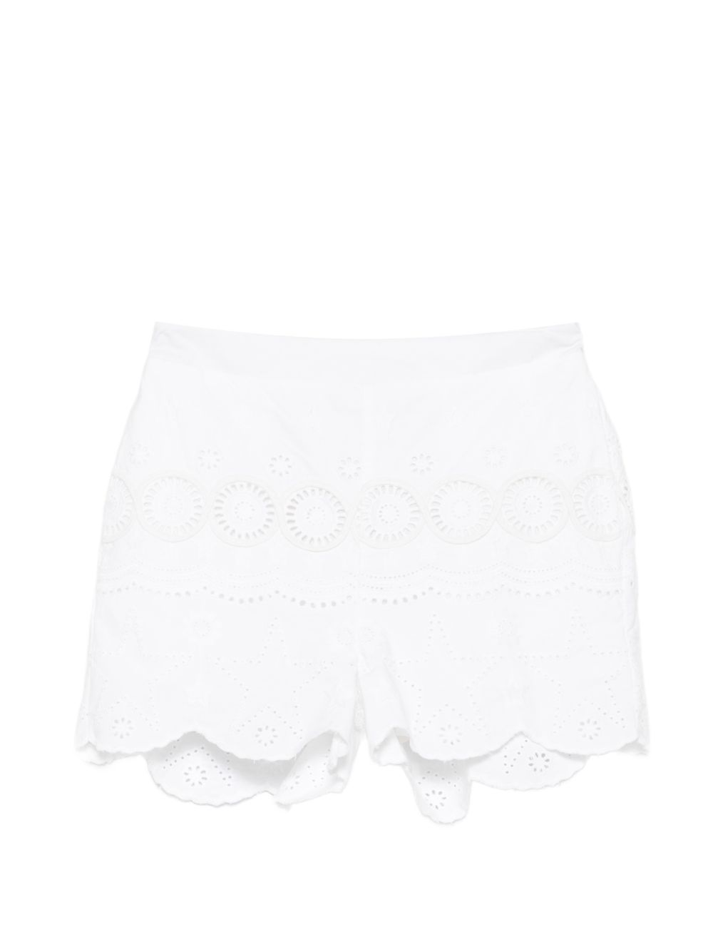 Shorts con orlo smerlato in pizzo sangallo bianco, elastico in vita, modello da infilare