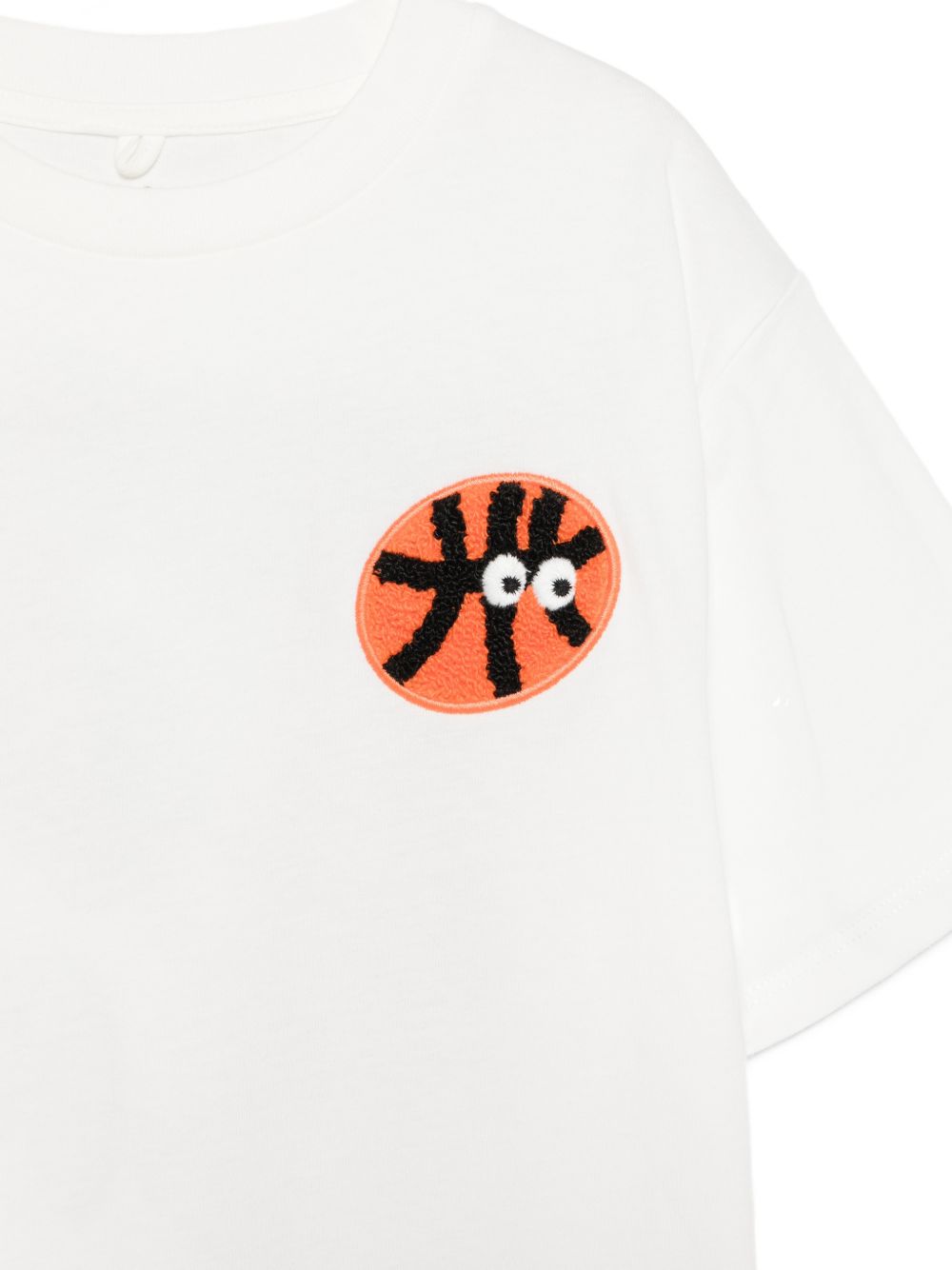 T-shirt con ricamo, bianco, girocollo, maniche corte.