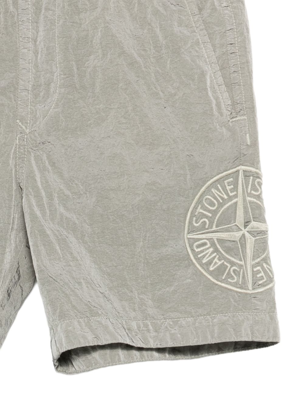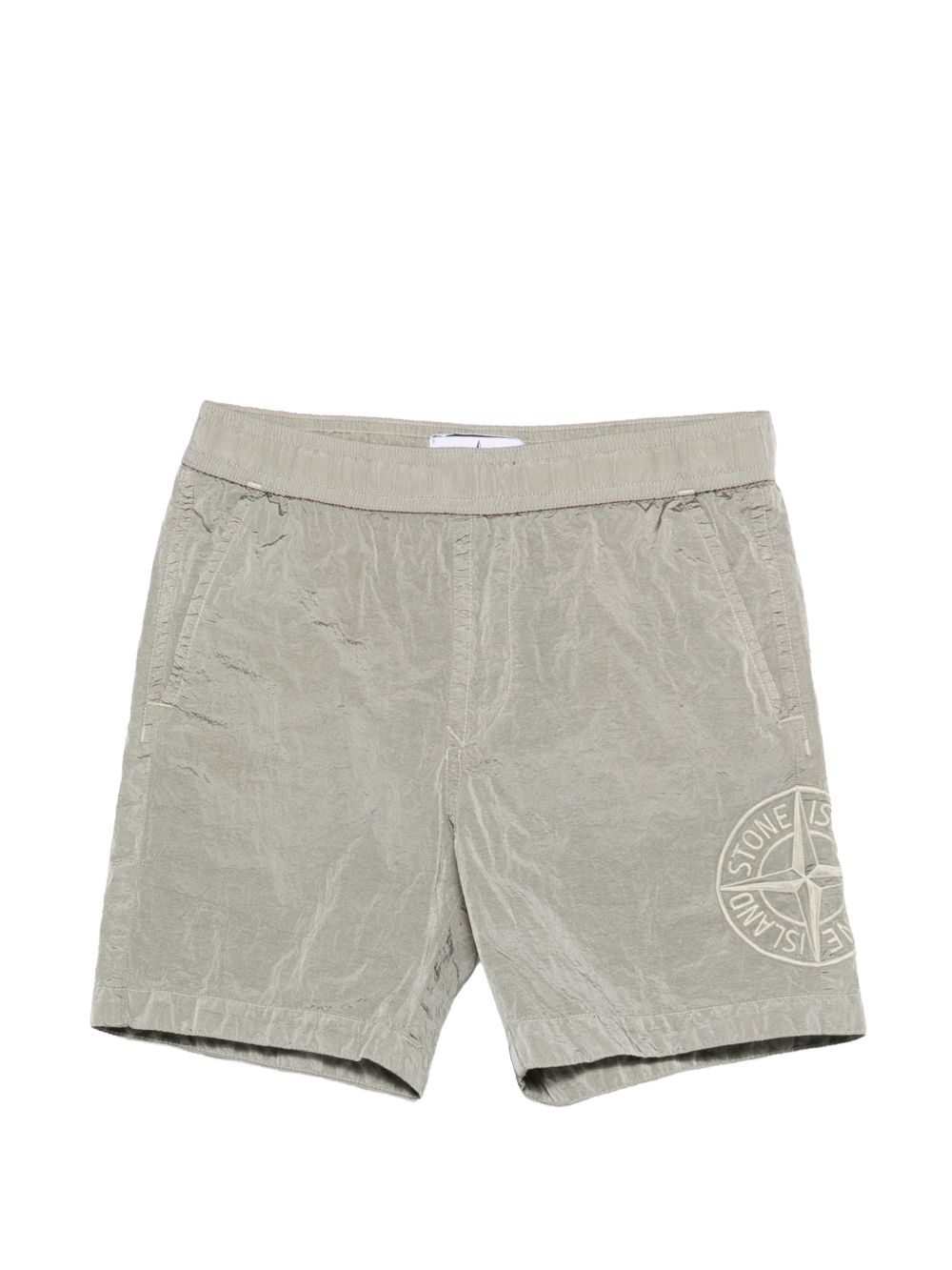 Costume con toppa con logo grigio, elastico in vita. Ricorda di provare il costume da bagno sopra i tuoi indumenti.