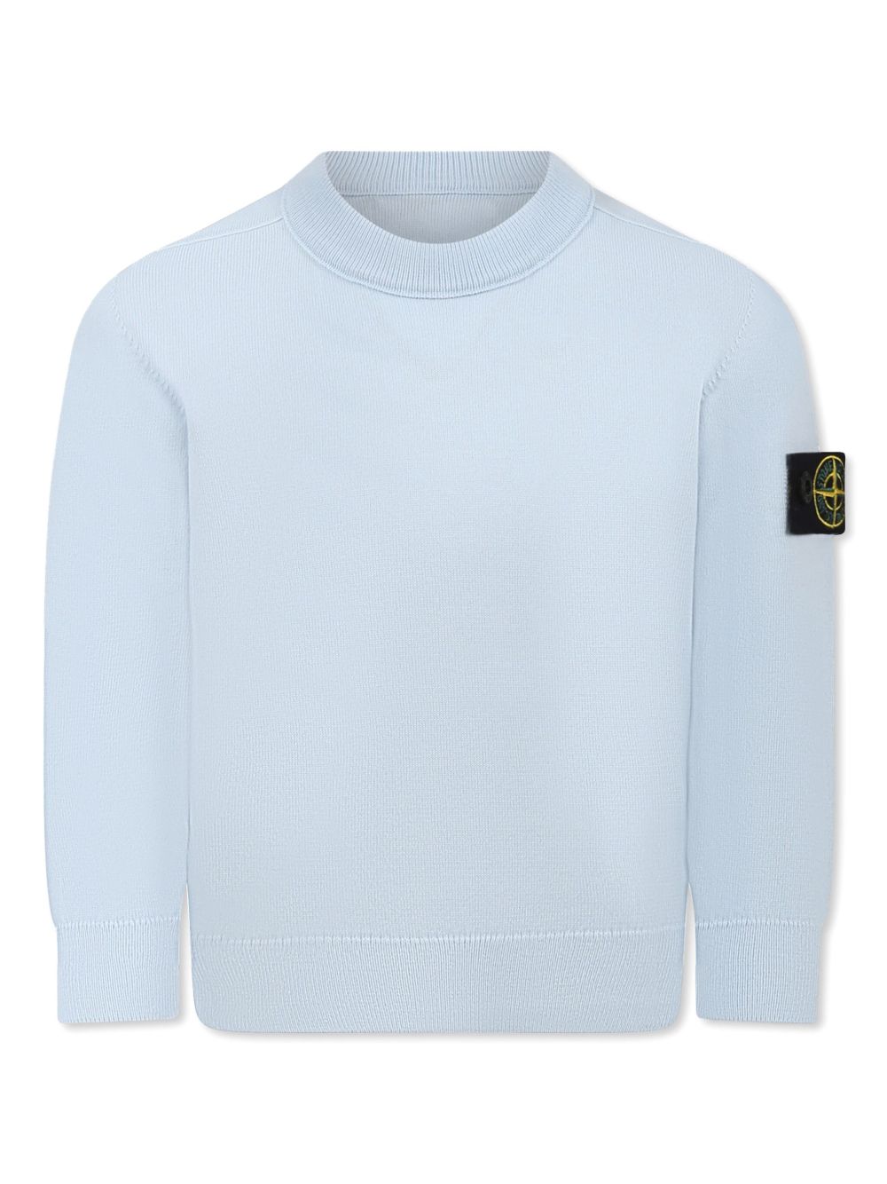 Maglia a girocollo celeste, maniche lunghe, polsini e orlo a coste, motivo Compass distintivo.