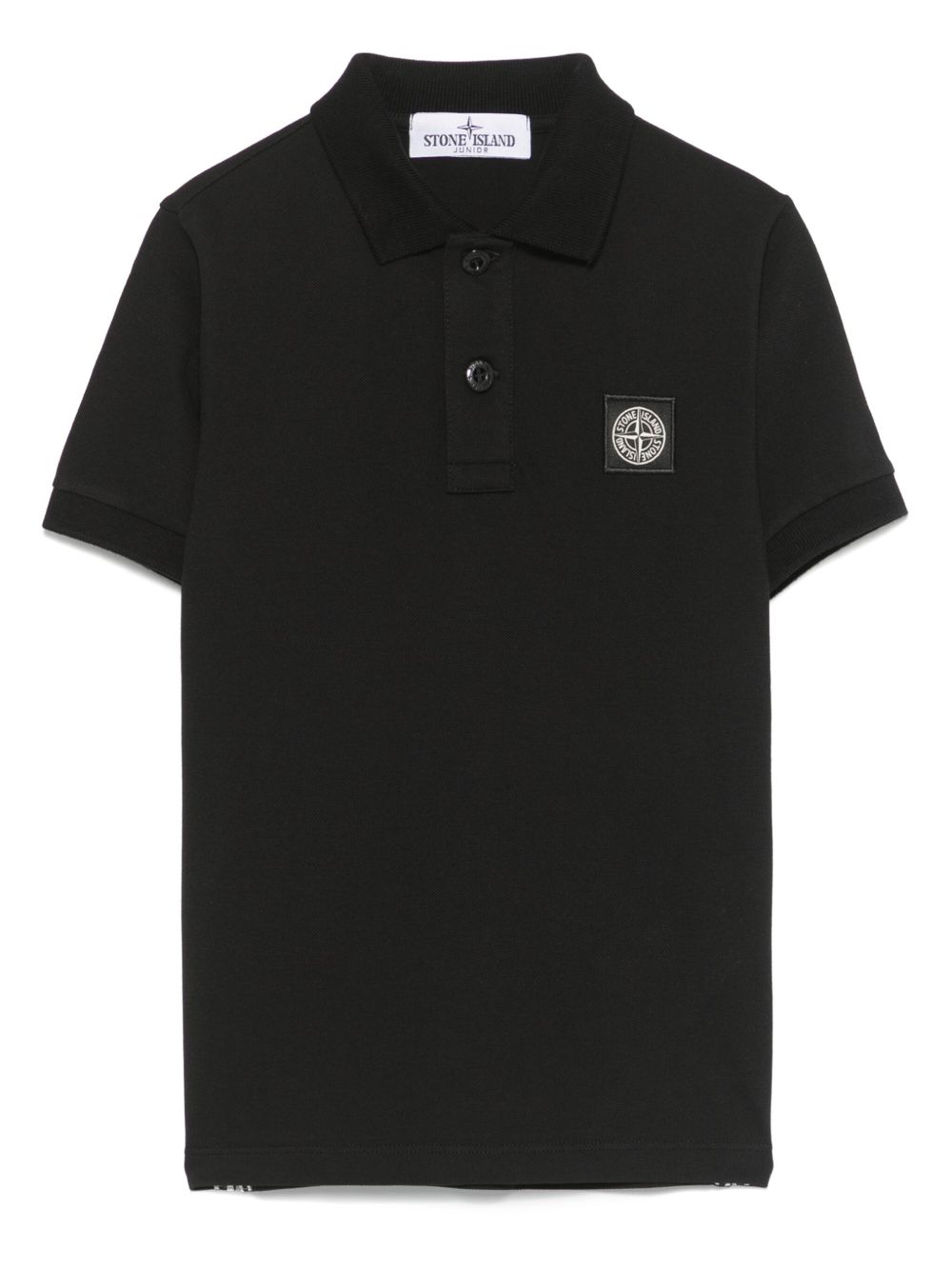 Polo abbottonatura frontale nera, polsini a coste, spacchi laterali corti, maniche corte