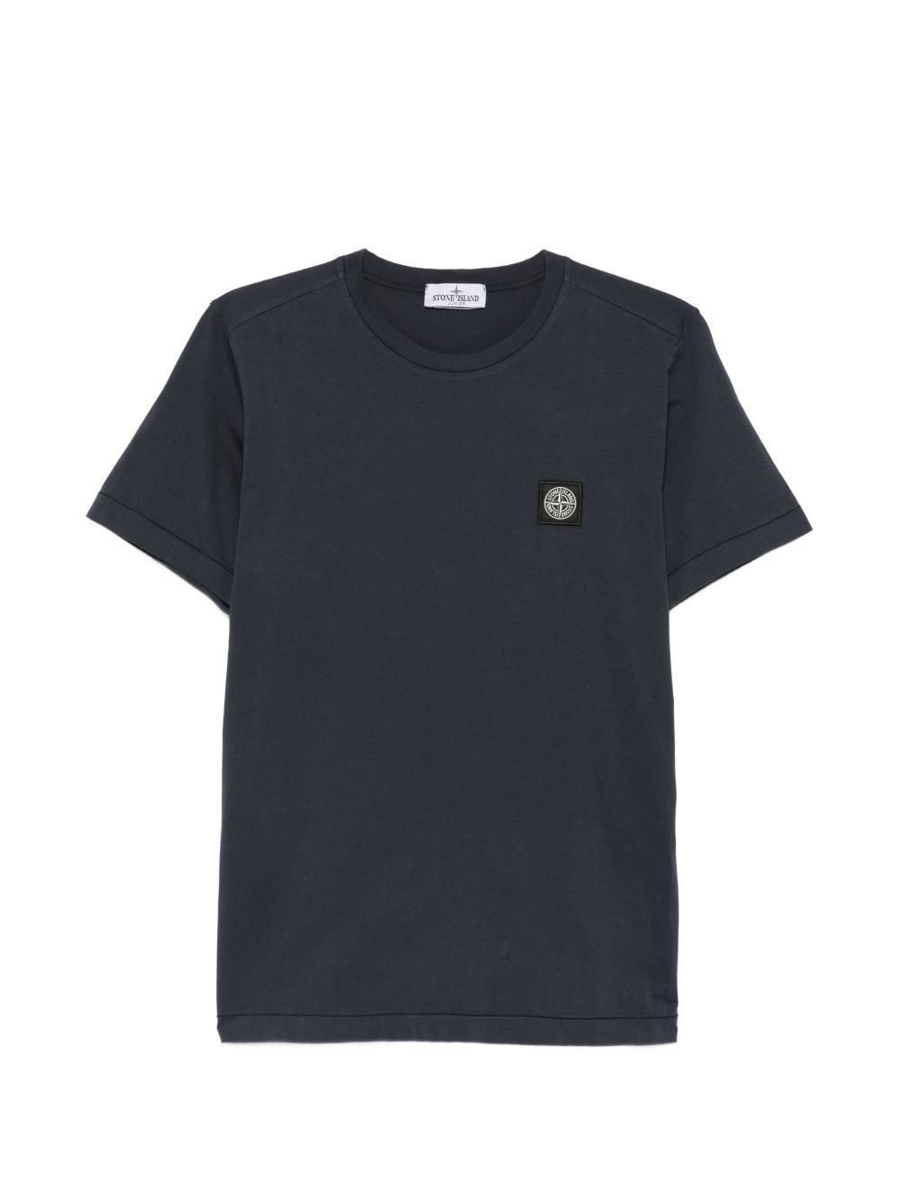 T-shirt in cotone blu, mezze maniche, dettaglio logo