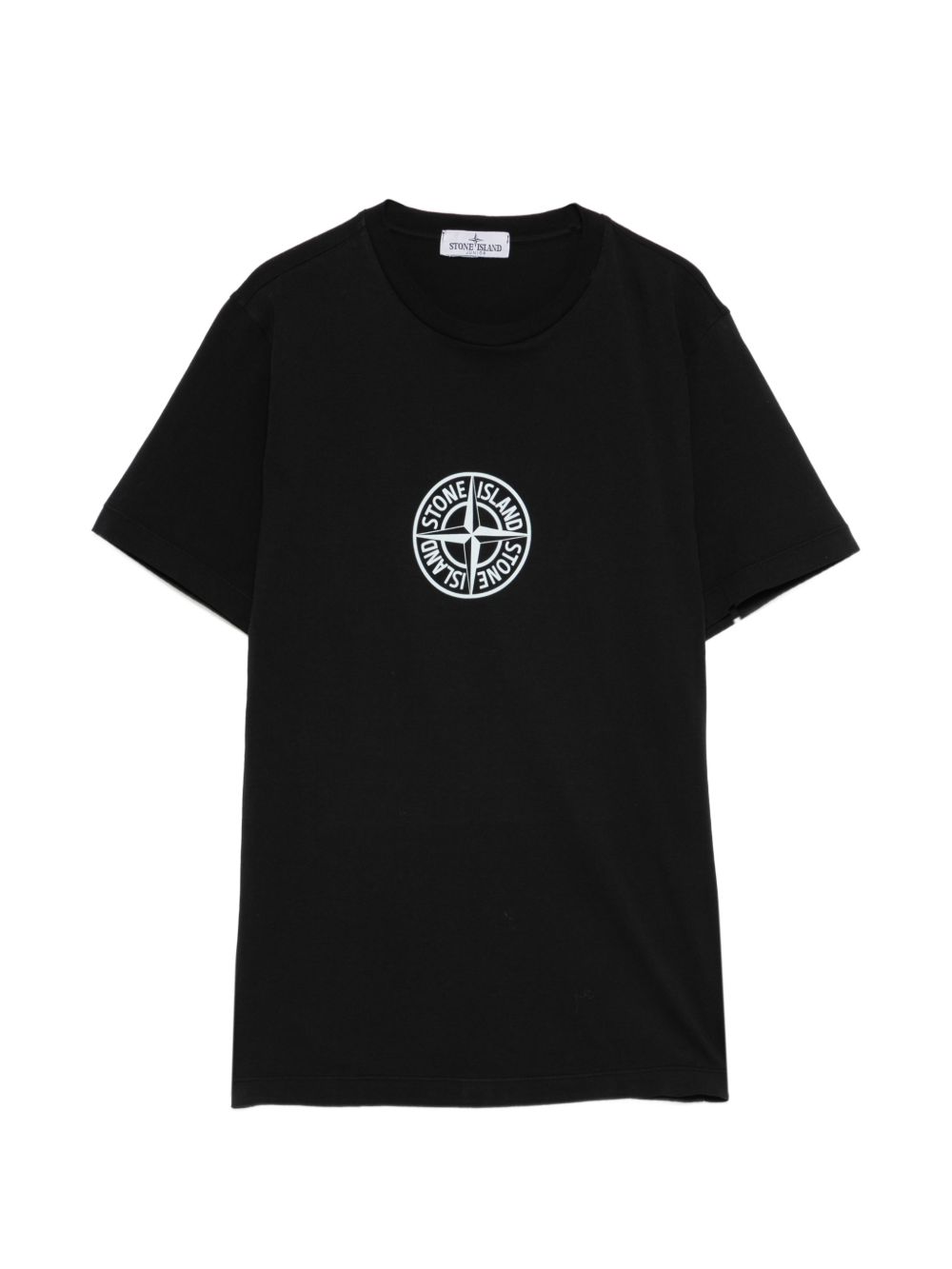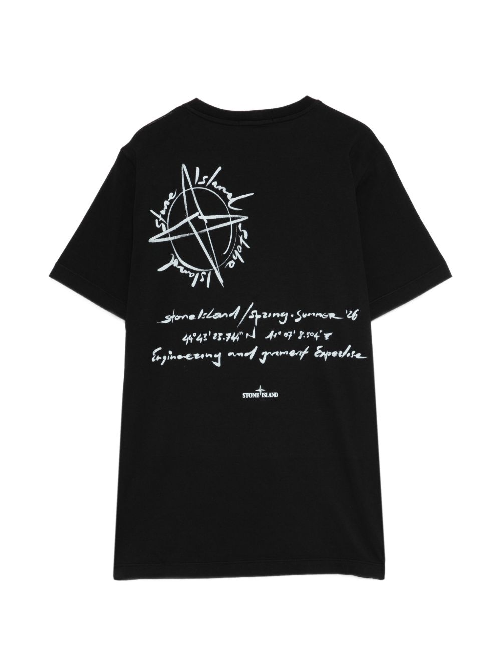 T-shirt nera con stampa logo sul davanti stampa grafica sul retro girocollo maniche corte orlo dritto